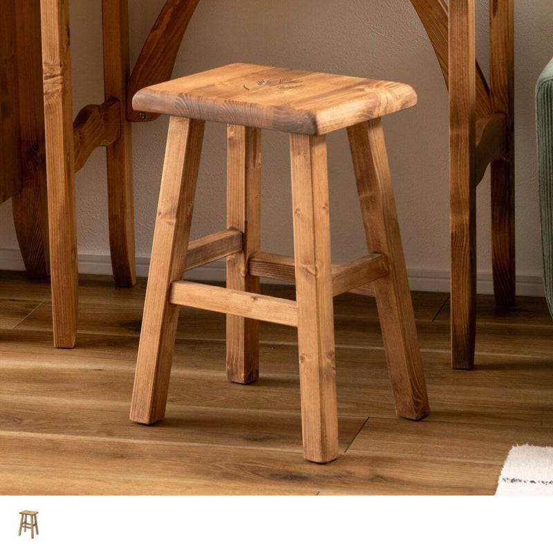 麦の刻印がさりげないアクセントになった、やわらかな雰囲気の角型スツール。