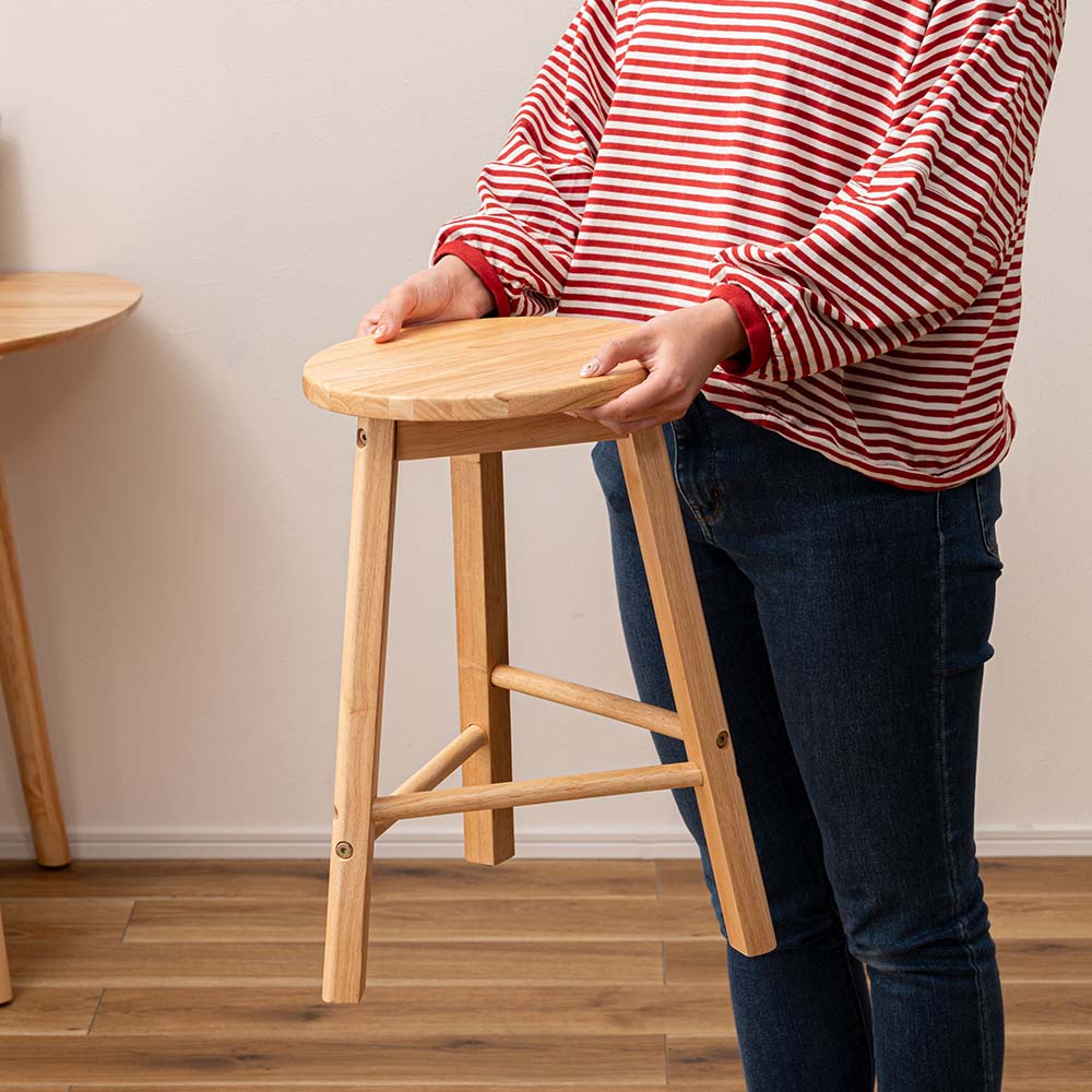 天然木の美しい木目と温かみのあるカラーが特徴の北欧風スツールです。