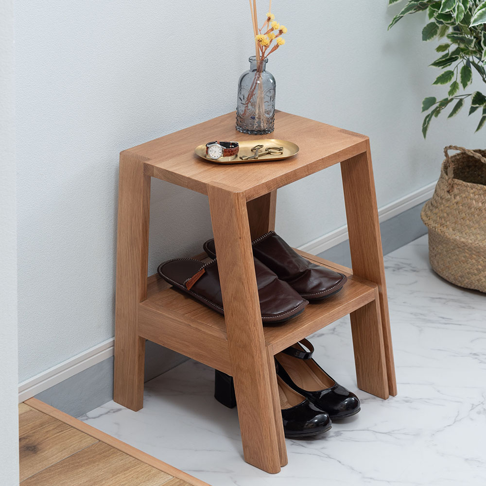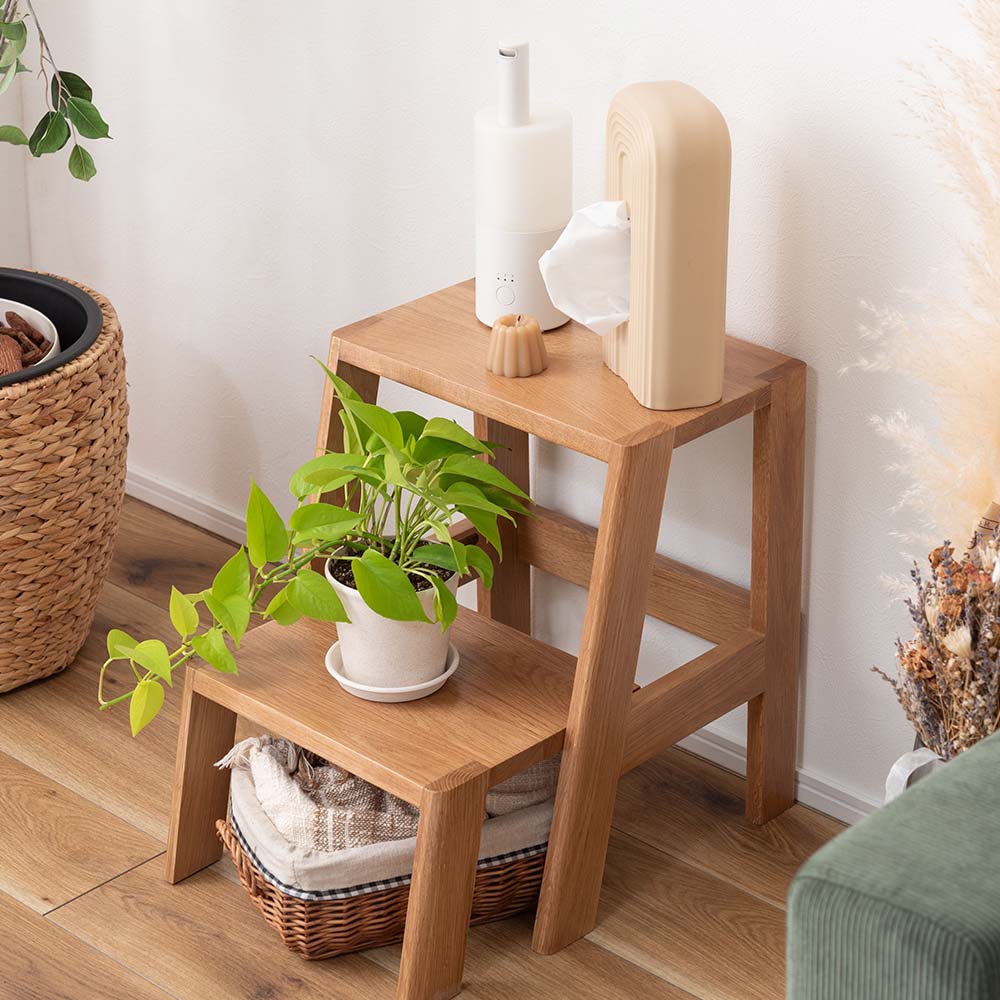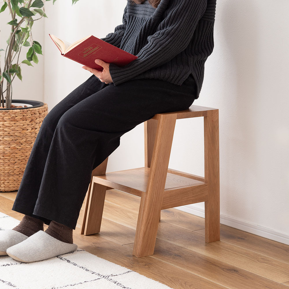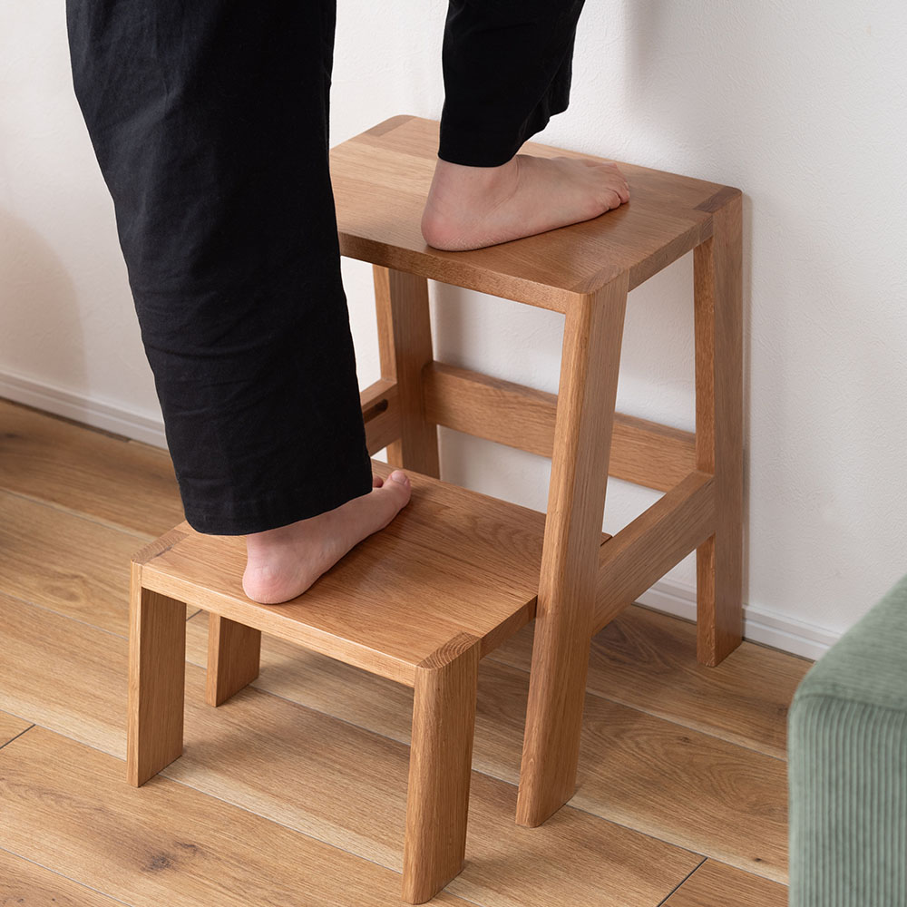 天然木オーク材のあたたかな風合いが魅力の、暮らしに寄り添うステップ台。