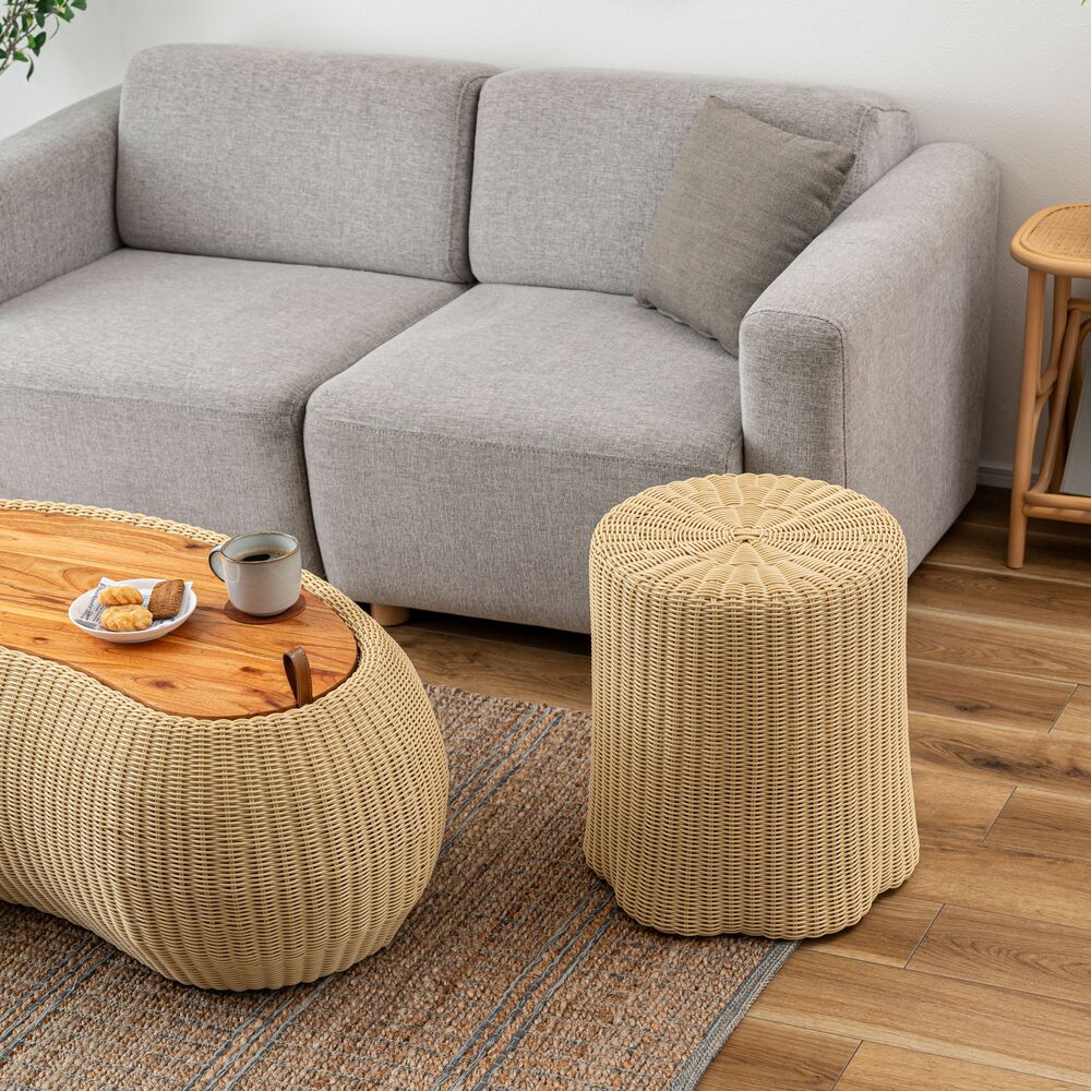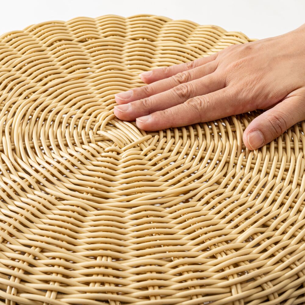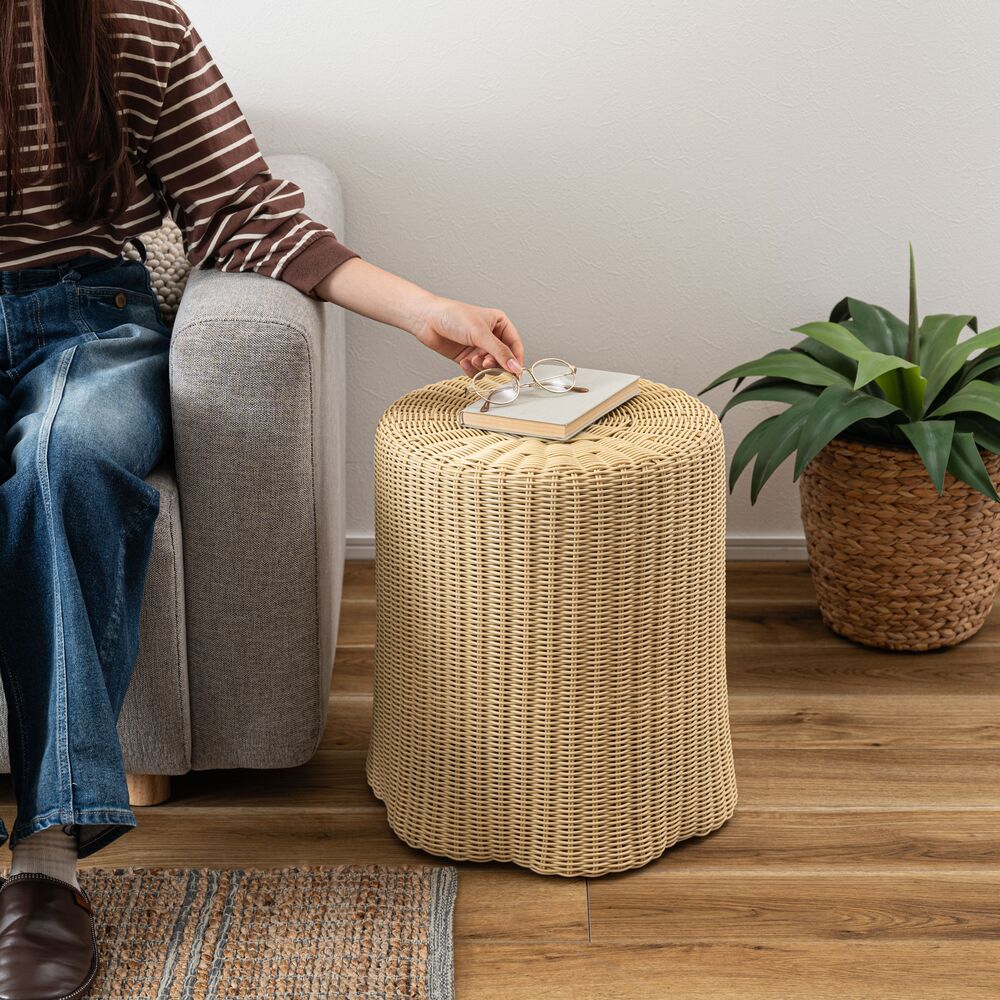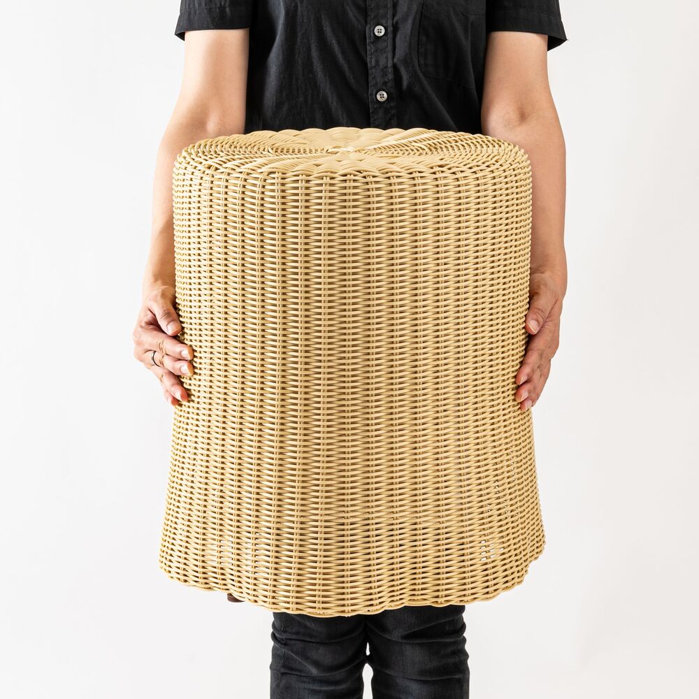 丁寧に編み込まれたラタンが、美しい陰影を描き出すスツール。