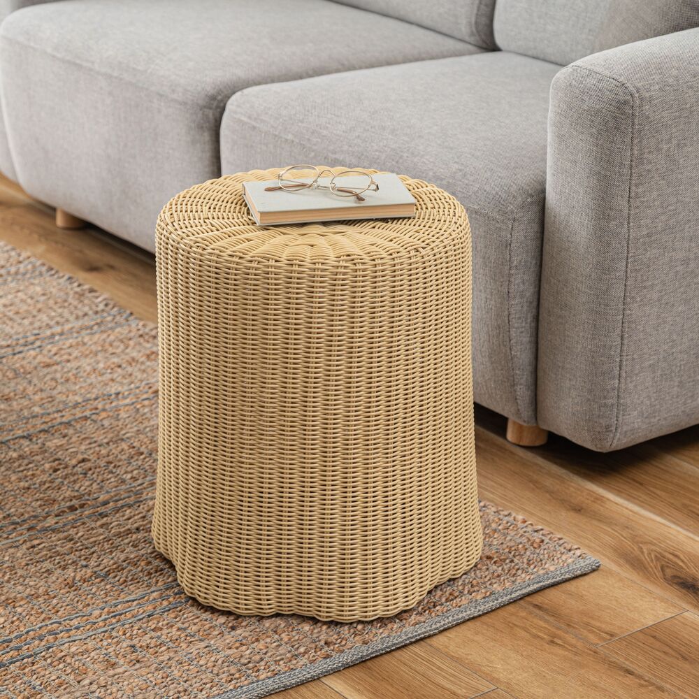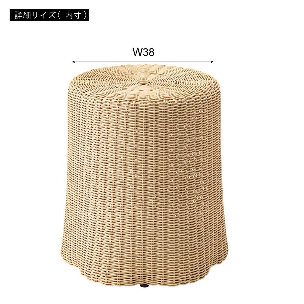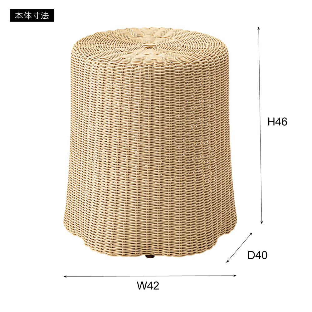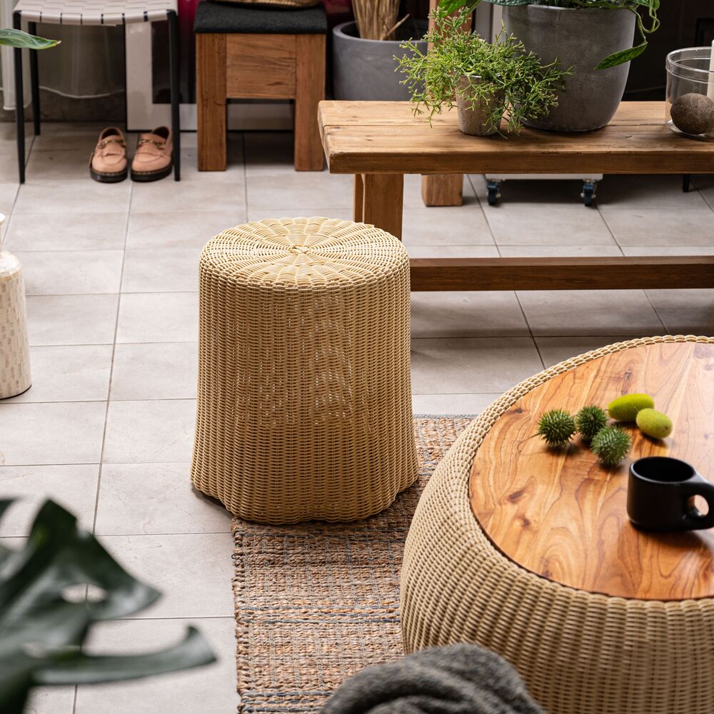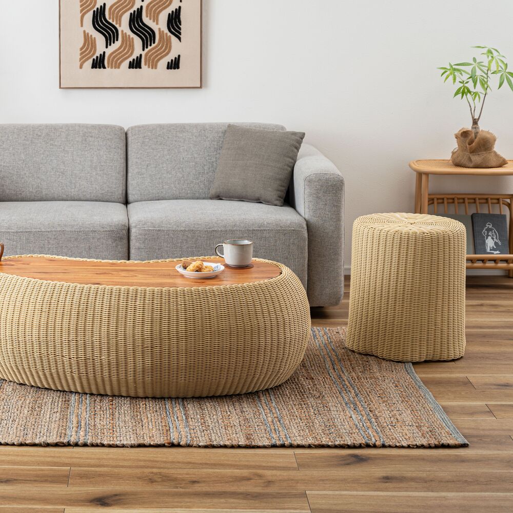 丁寧に編み込まれたラタンが、美しい陰影を描き出すスツール。