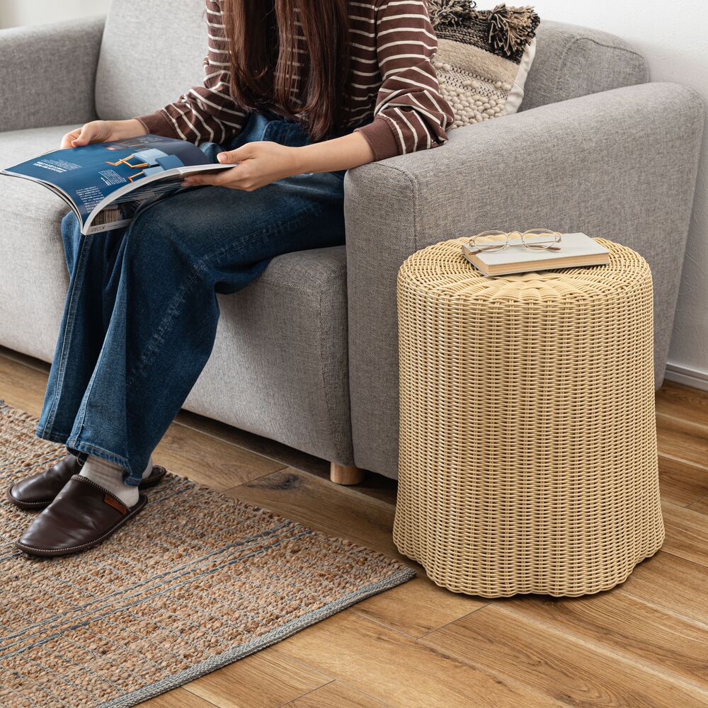 スツールとしてはもちろん、飲み物や本を置くサイドテーブルとしても活躍。