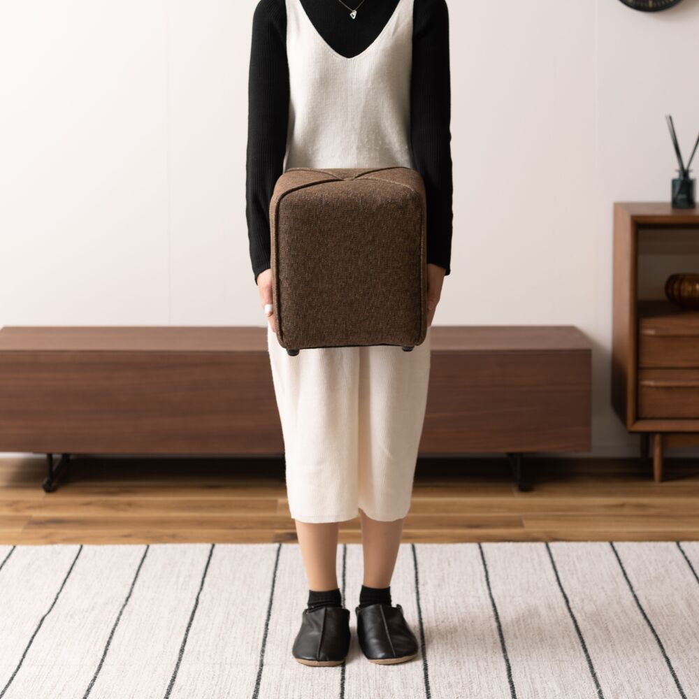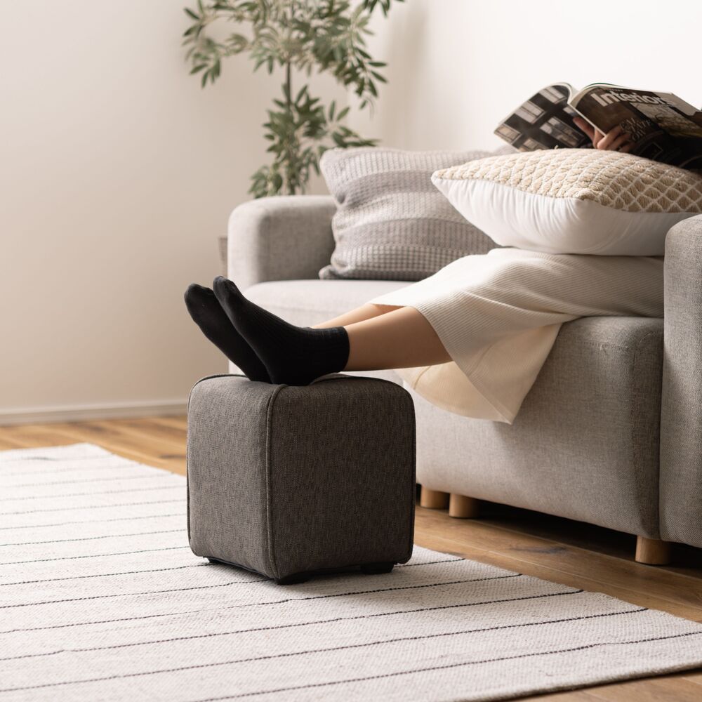 ソファのそばに置いて、オットマンとしてゆったり足を伸ばすのもおすすめ。