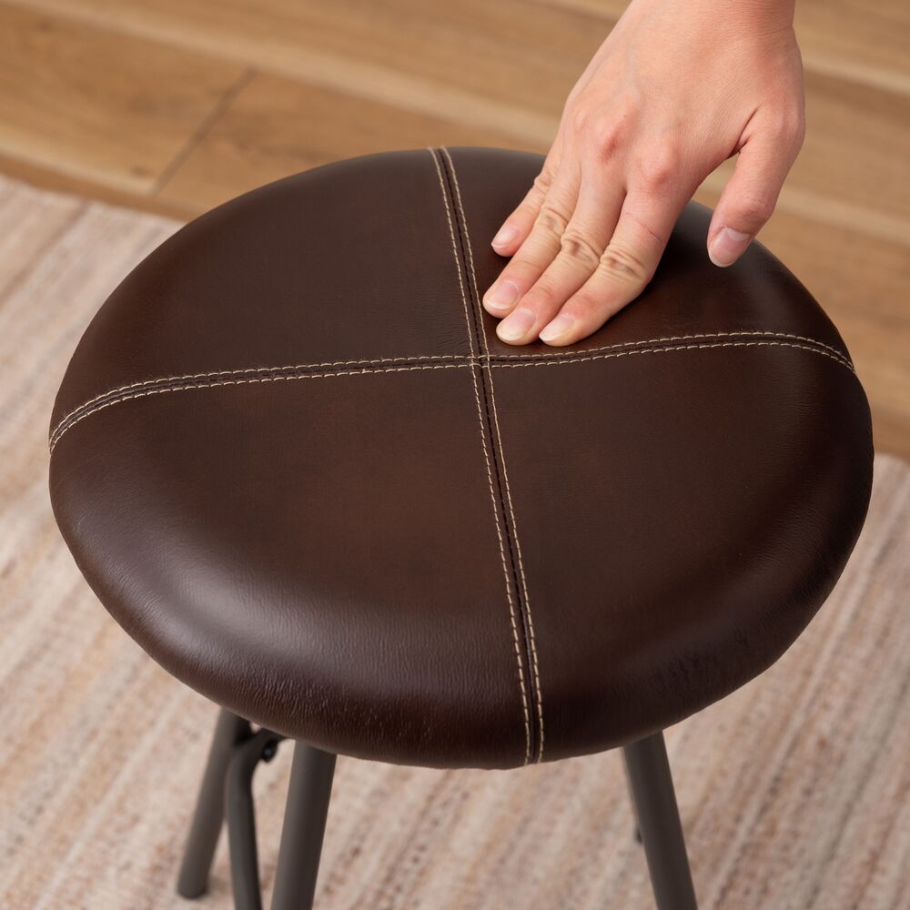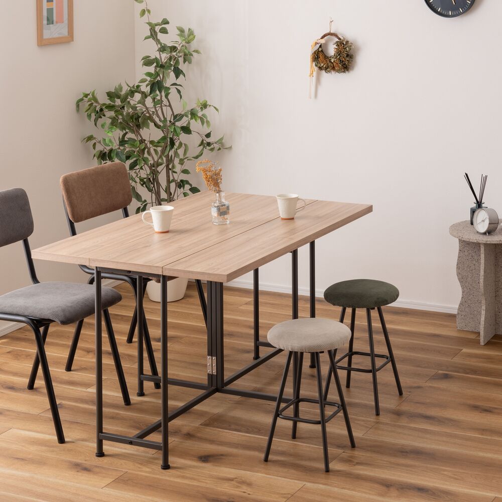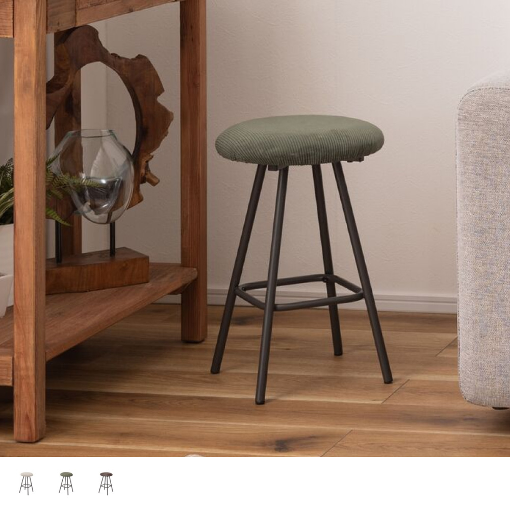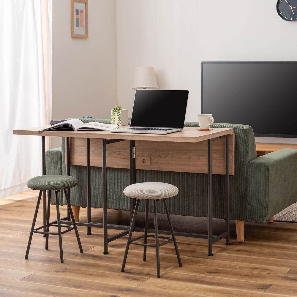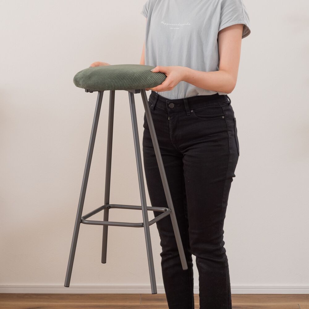 キッチンカウンターでの朝食や、デスクワークの合間の休憩にちょうどいい、コンパクトなサイズ感。座面にはクッション性があり、座り心地も快適です。