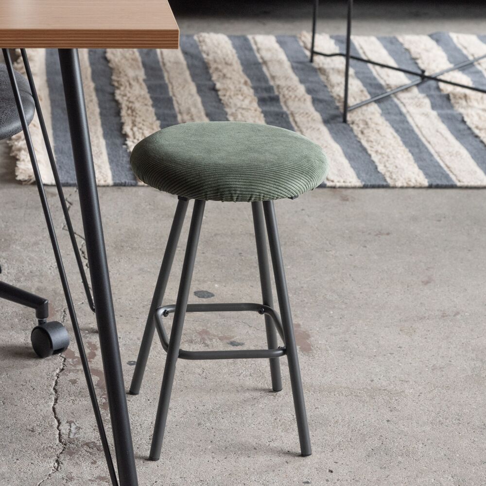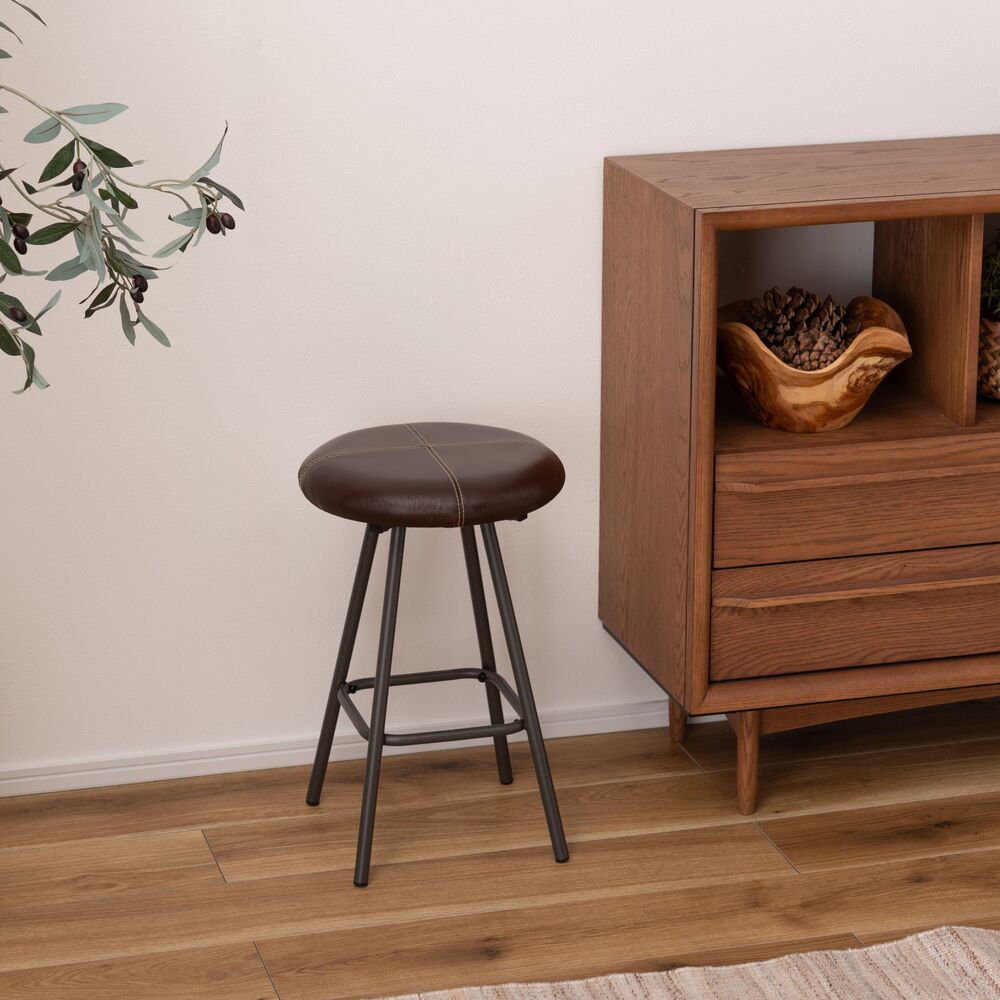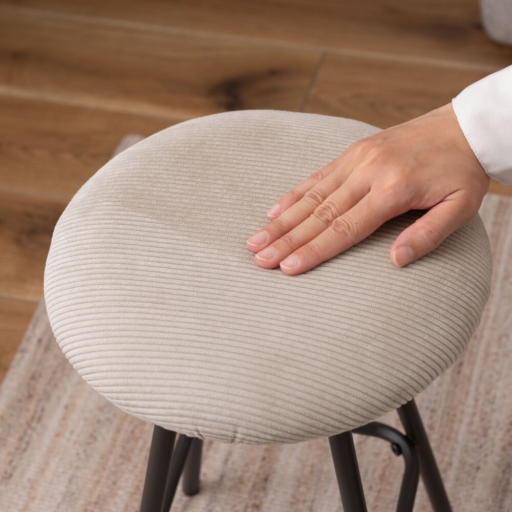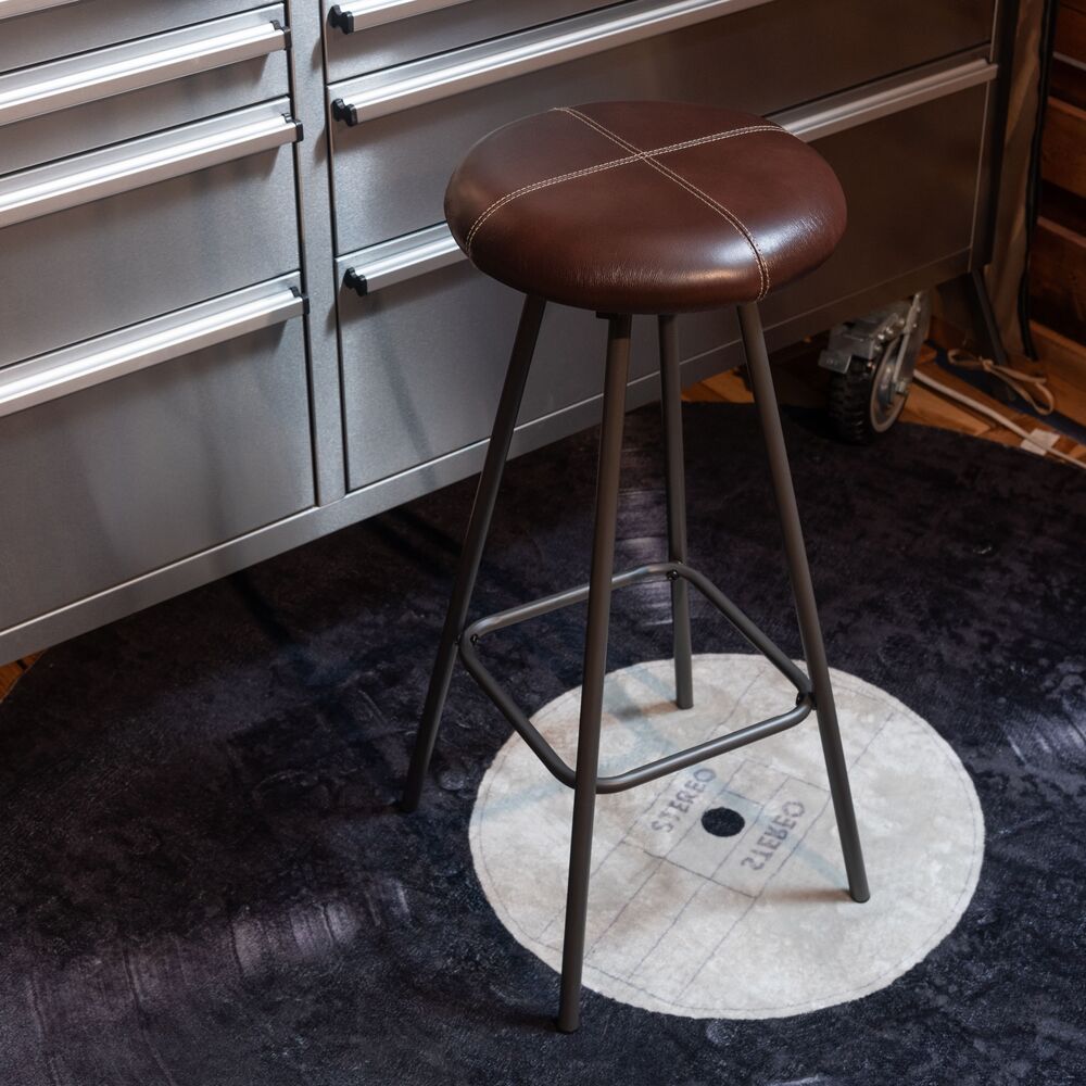 キッチンカウンターでの朝食や、デスクワークの合間の休憩にちょうどいい、コンパクトなサイズ感。座面にはクッション性があり、座り心地も快適です。