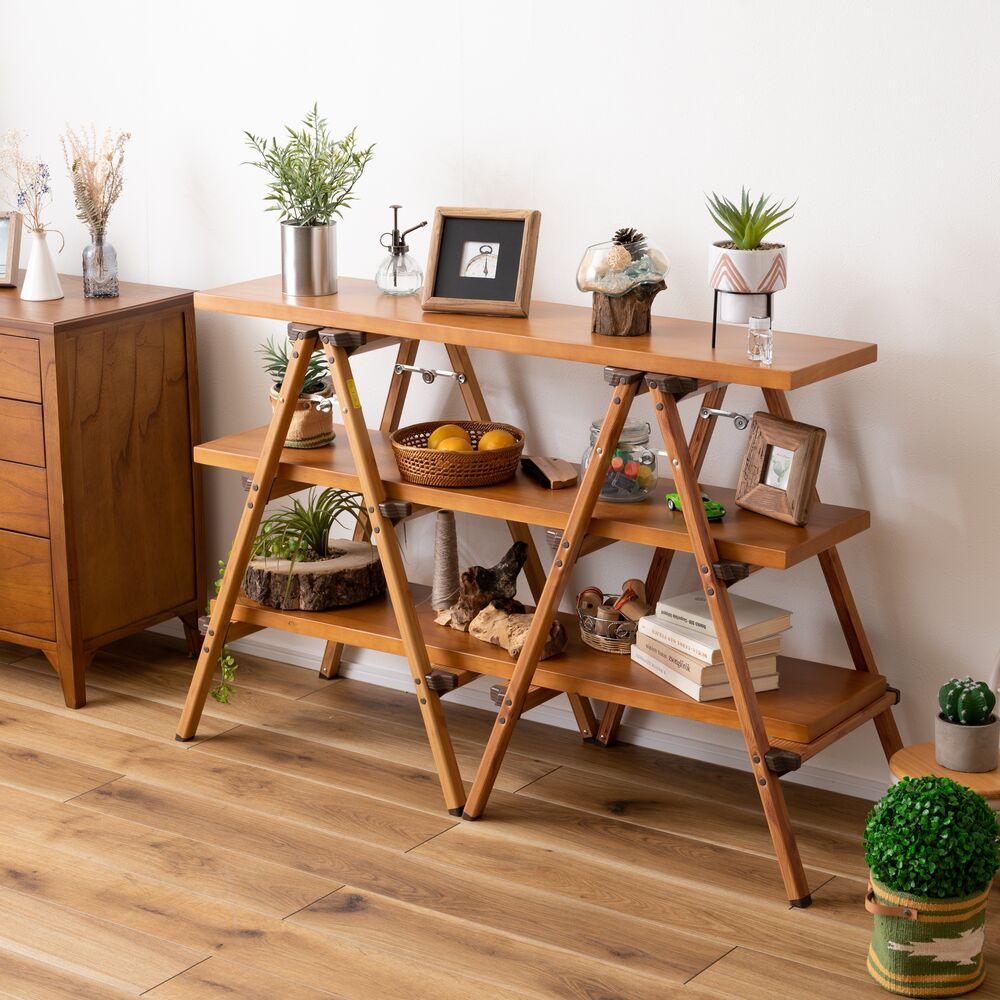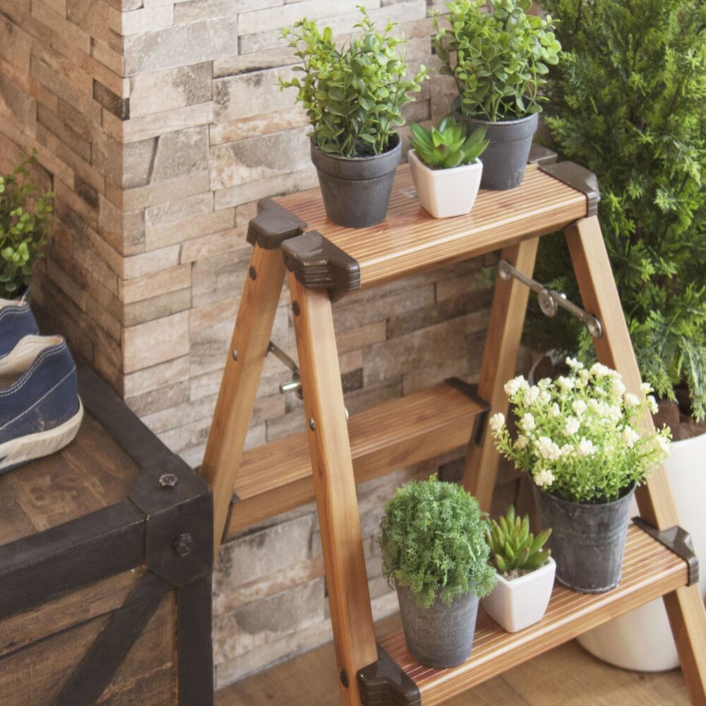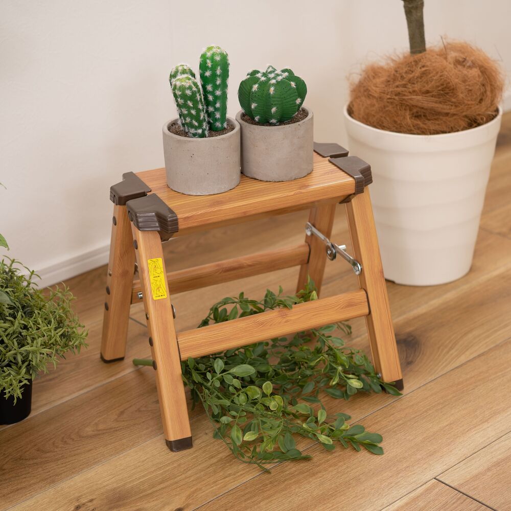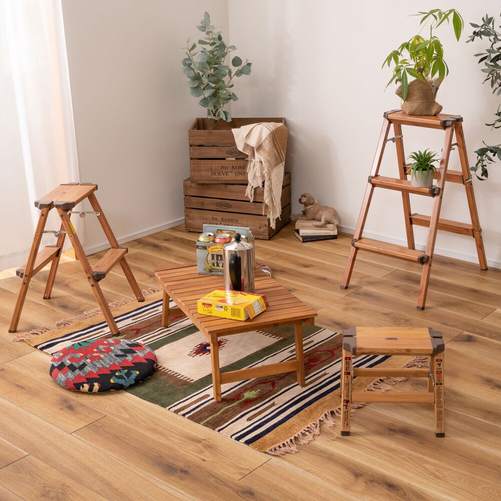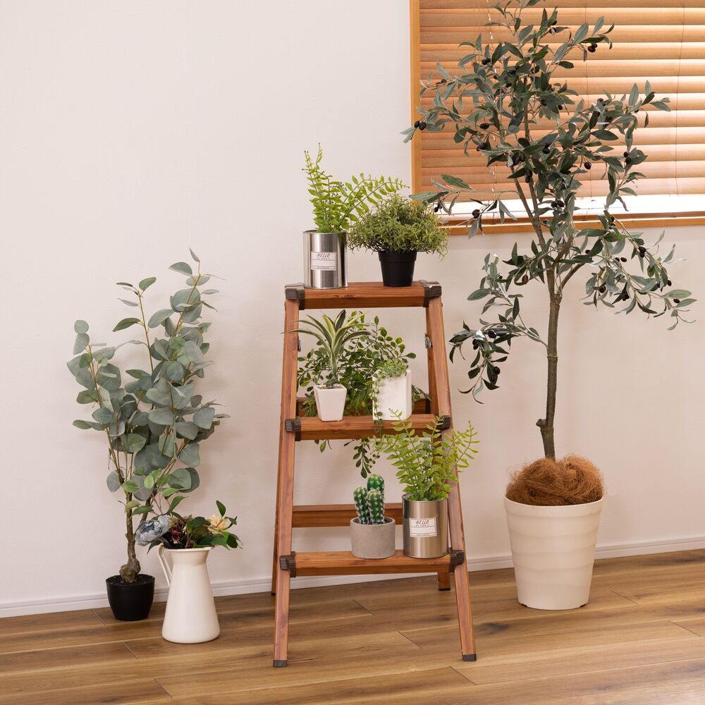 高い場所の物を取る、という役割はもちろん、グリーンを飾る花台やサイドテーブルとしても絵になります。