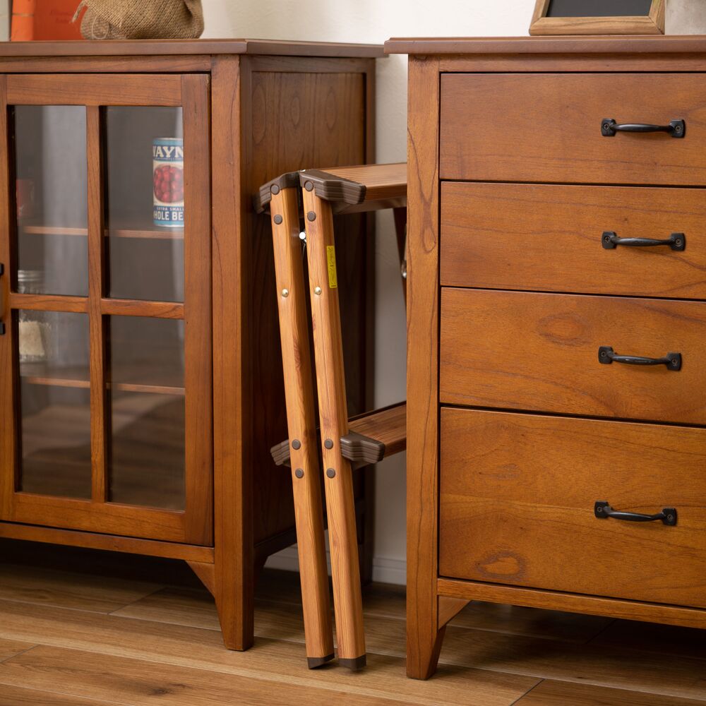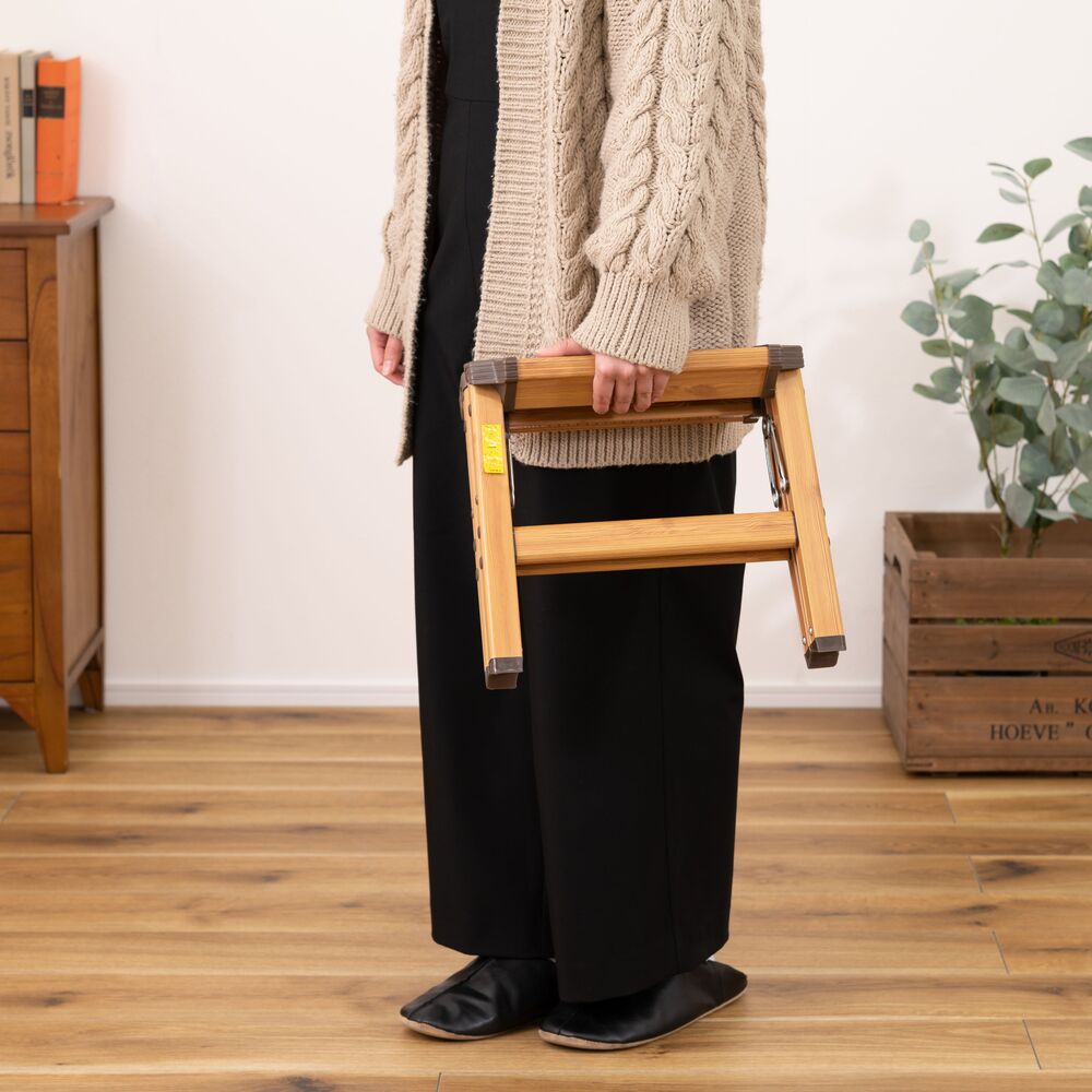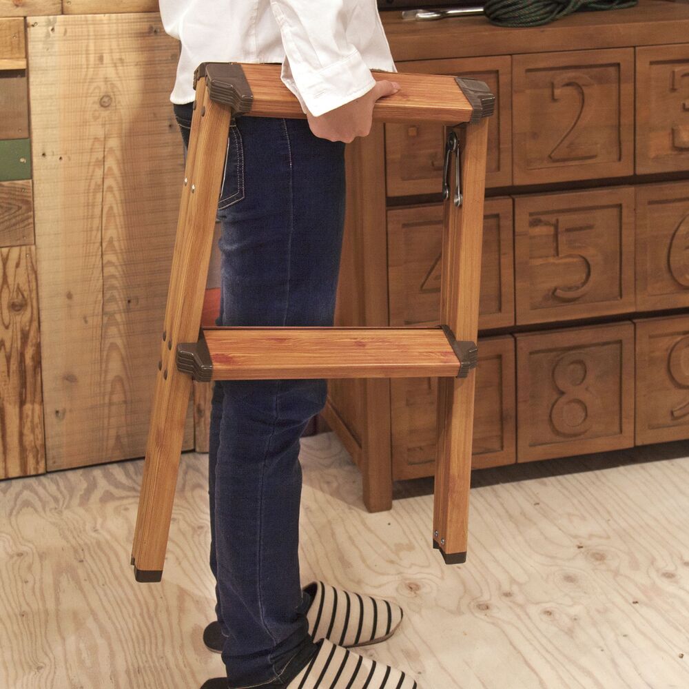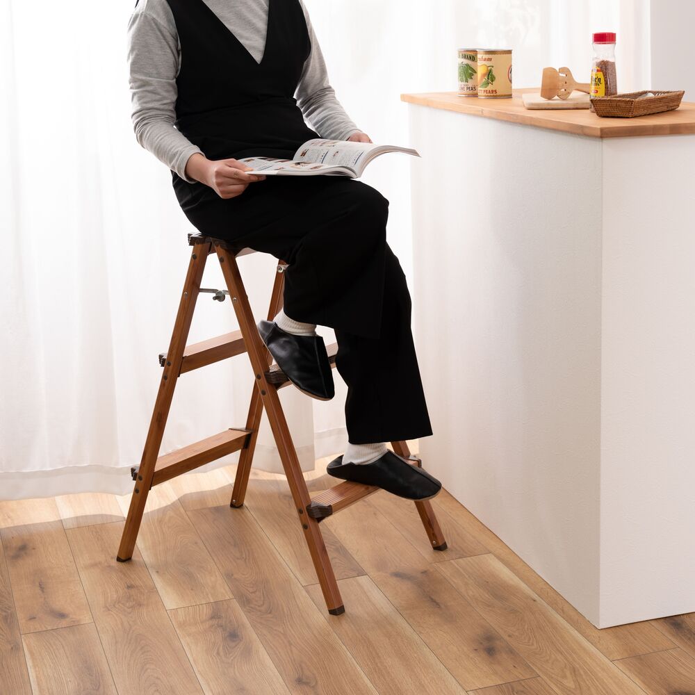 もう、隠さなくていい。お部屋のインテリアに溶け込む、木目調のステップスツール。