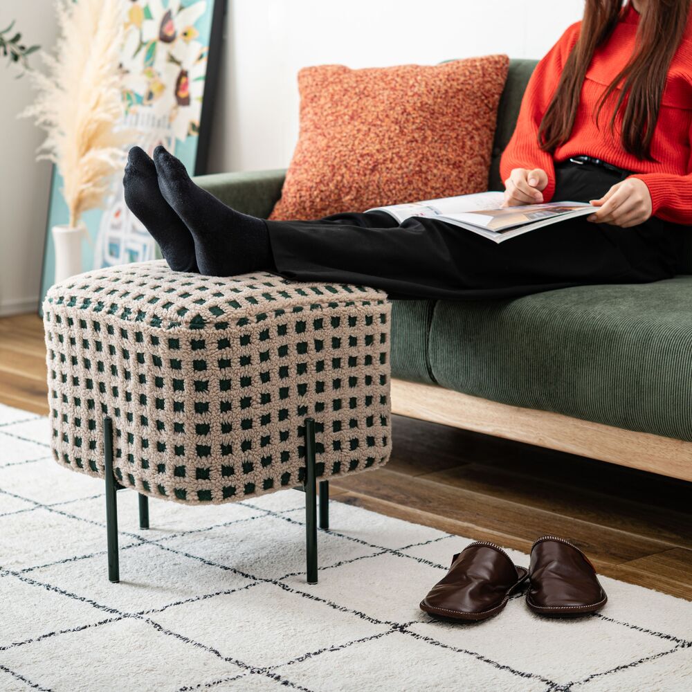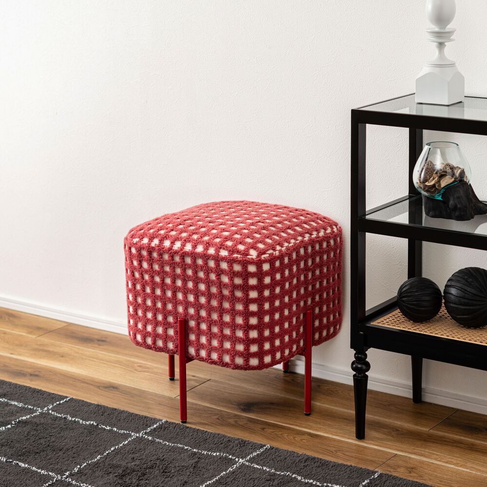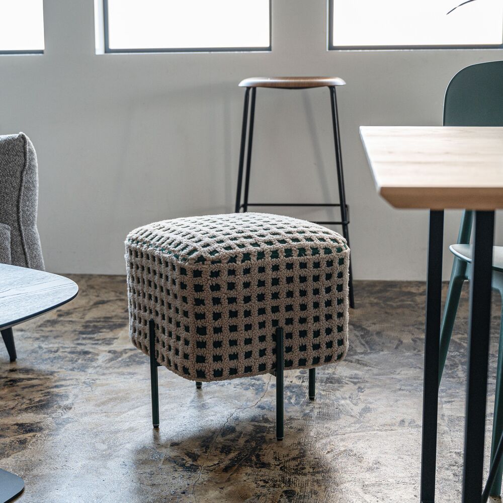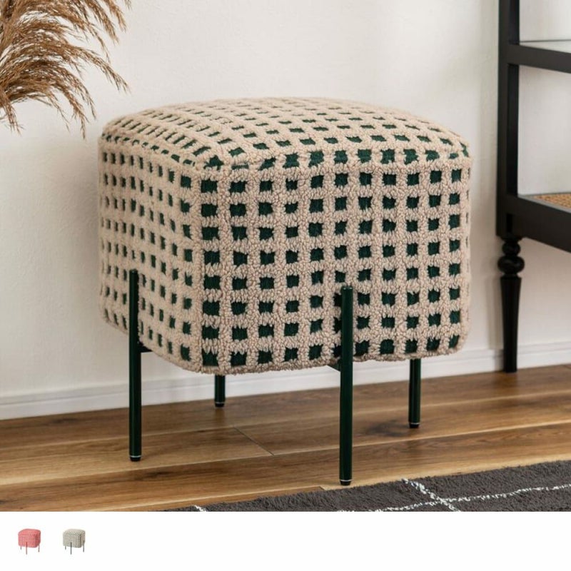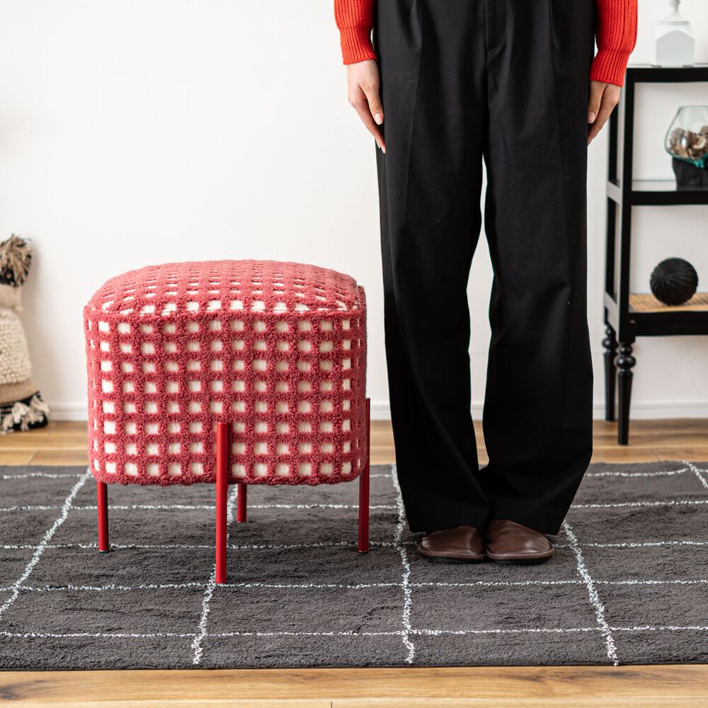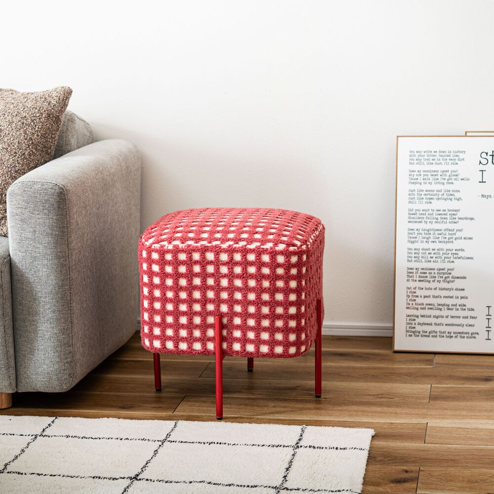 ポコポコとした立体的なチェック柄が、お部屋に楽しいリズムを生むスツール。