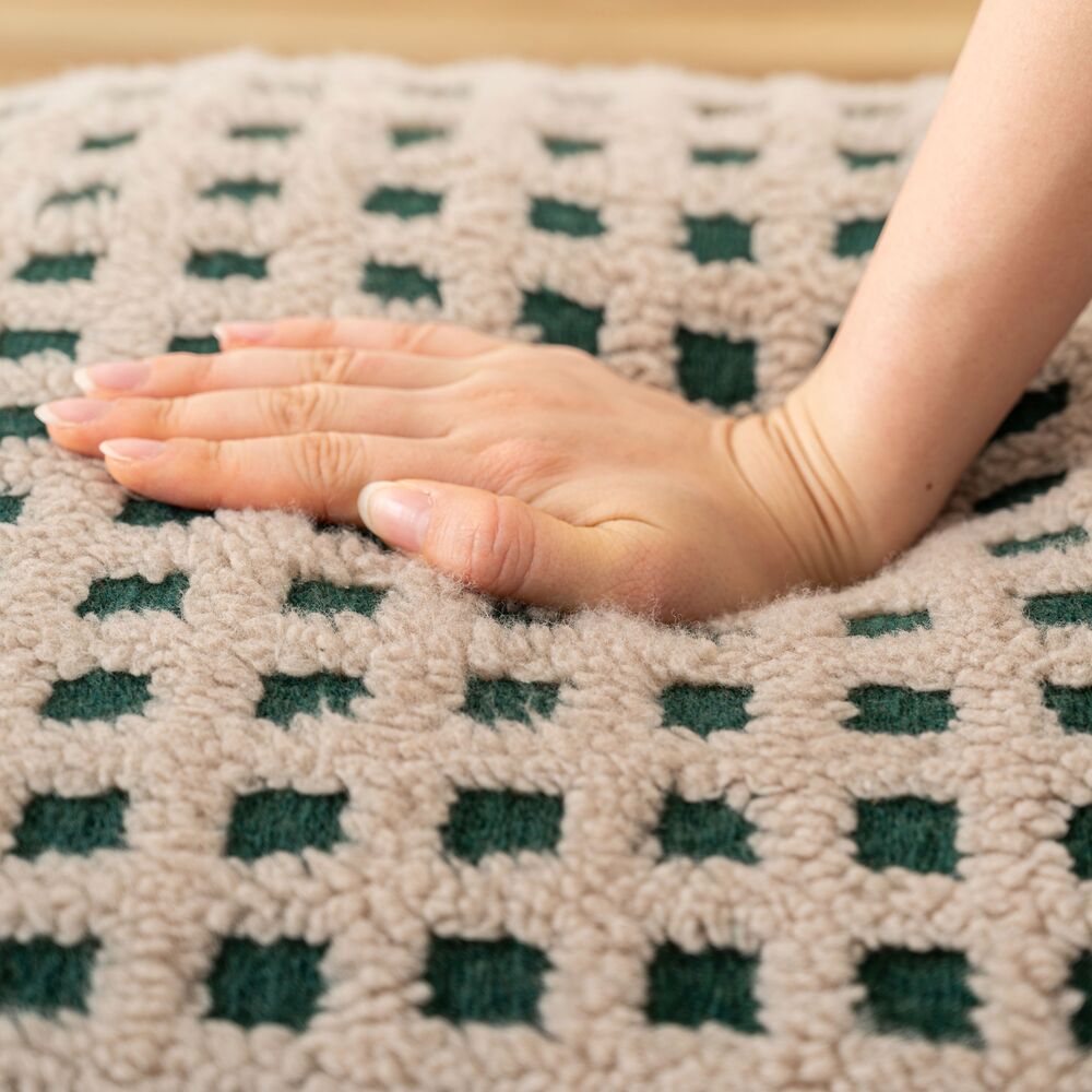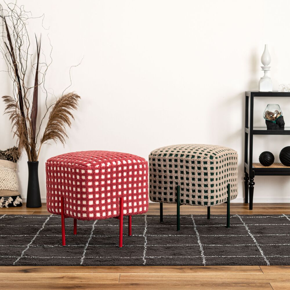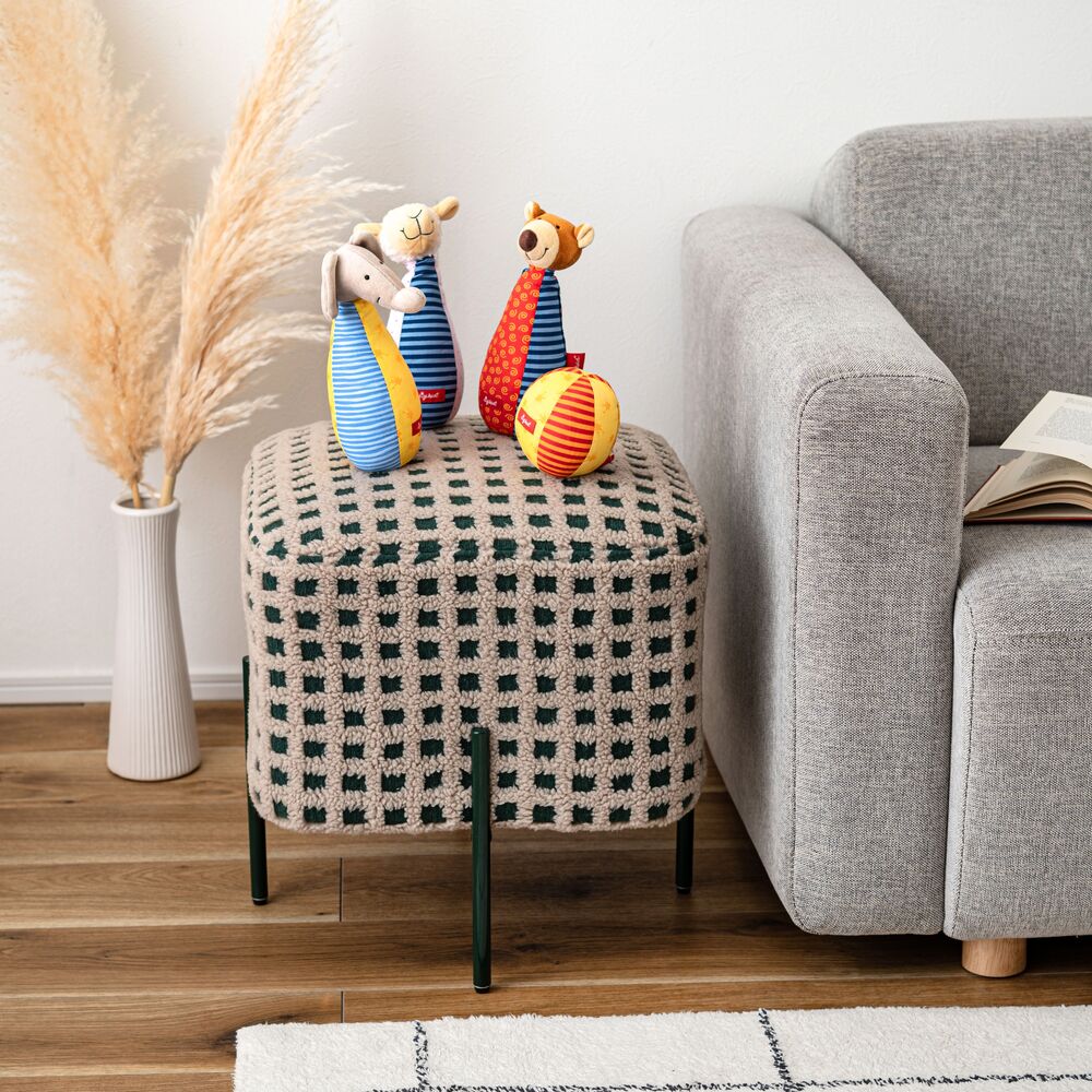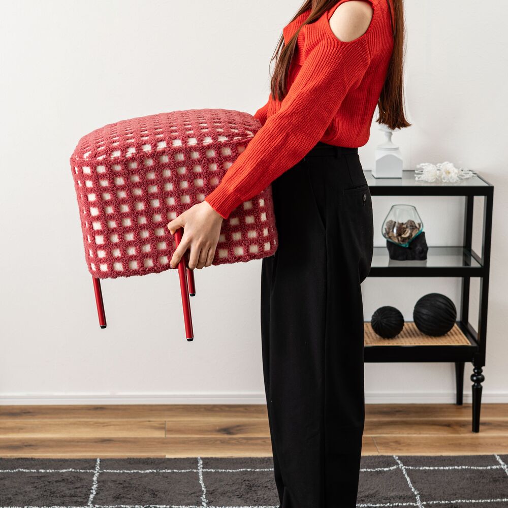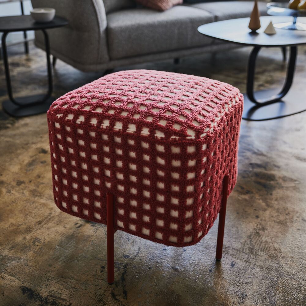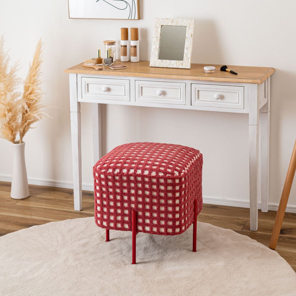 ポコポコとした立体的なチェック柄が、お部屋に楽しいリズムを生むスツール。