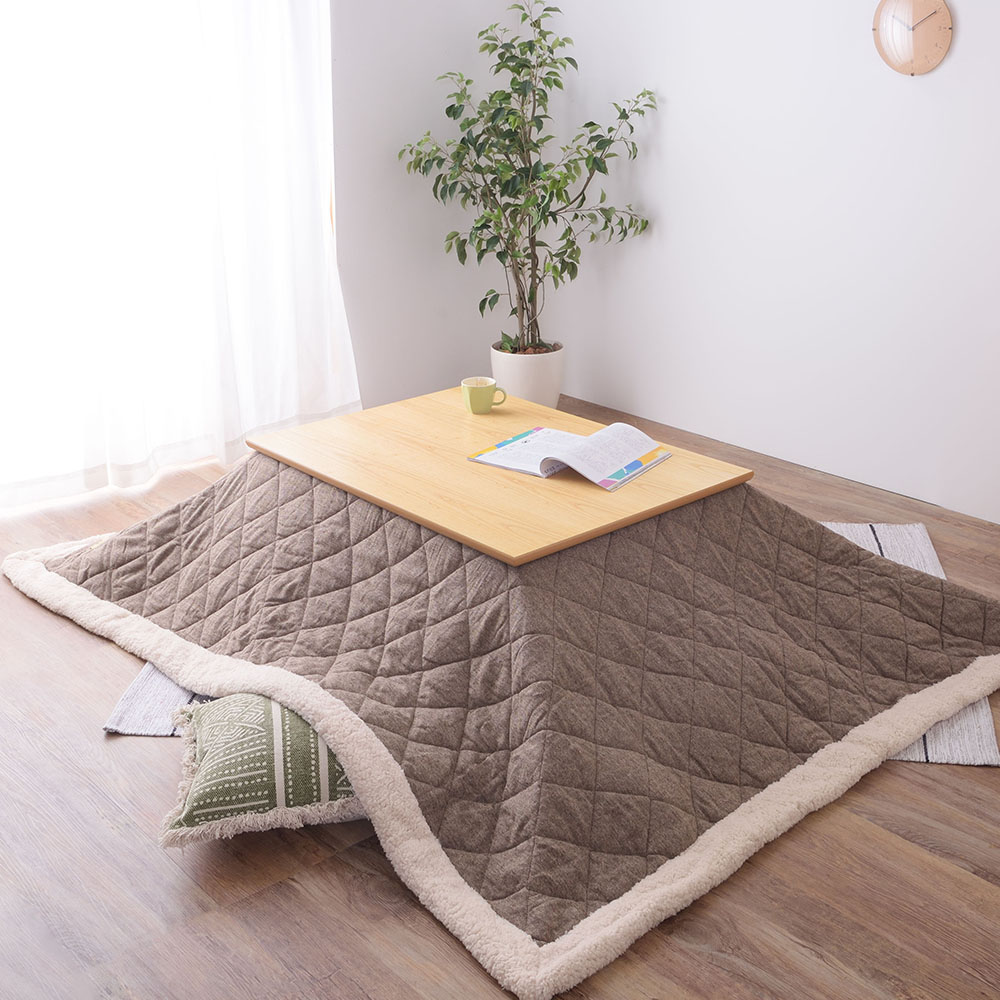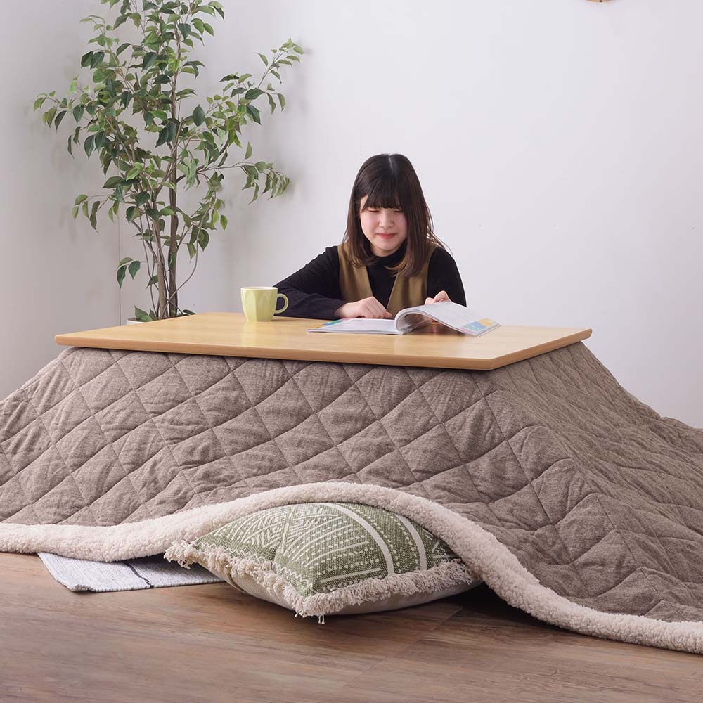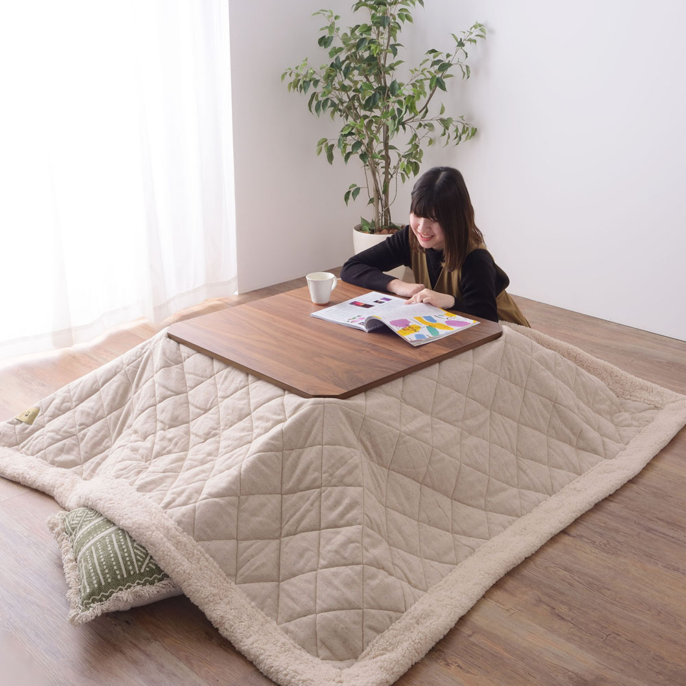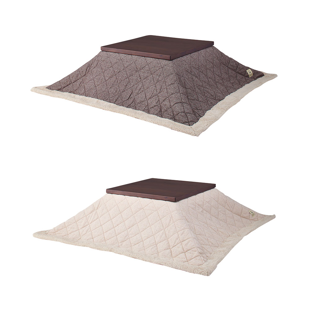 ツイード風の表地とふかふかボアの縁取りがかわいらしい、薄掛けタイプのこたつ布団です。