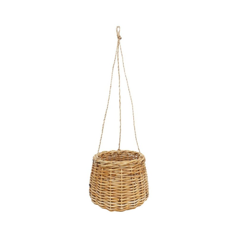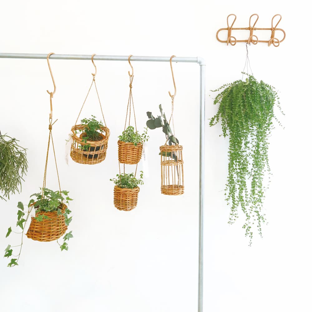 天然素材の温かさと、吊るせるデザインが魅力。植物を入れて飾れば、空間に動きと彩りが生まれます。