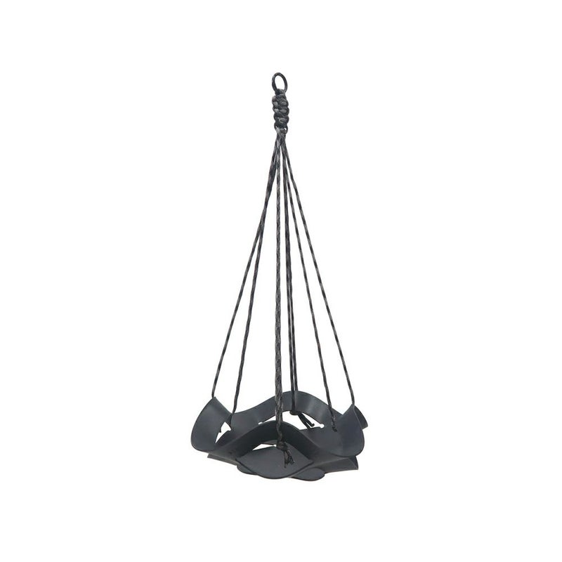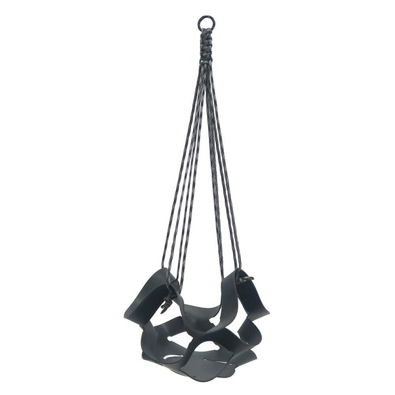 円形ラバーが吊るとネット状に変形して鉢を包み込みスタイリッシュな印象に。