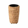 丁寧に編み込まれたウォーターヒヤシンス素材が、自然の温もりを感じさせる丸型ハイタイププランター。