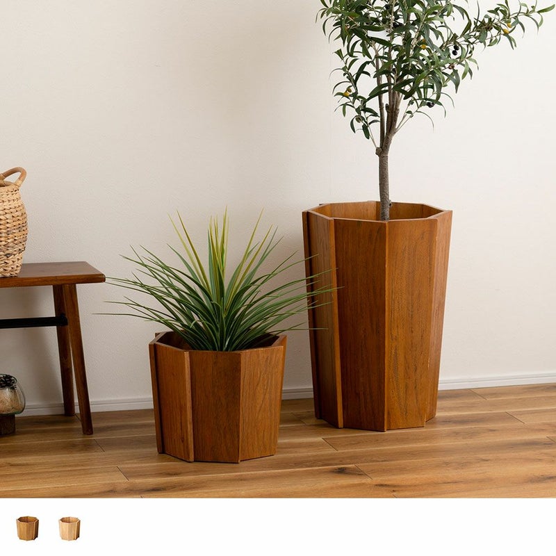 鉢ごと入れるだけで、植物の存在感をぐっと引き立ててくれるウッドプランターです。