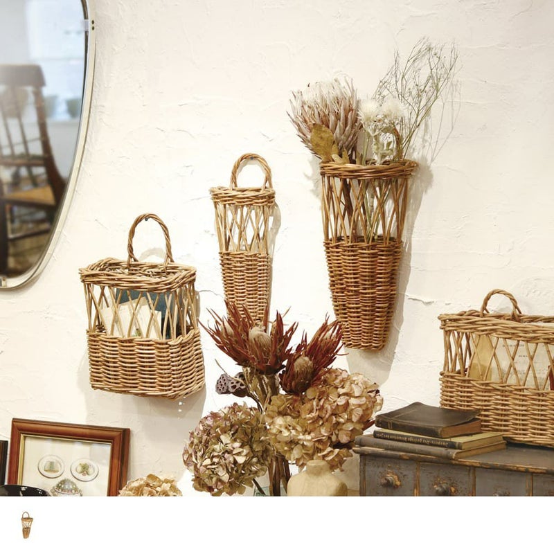 飾るだけで様になるウォールバスケットは、壁に飾るのはもちろん、そのまま立てかけて使ってもとってもおしゃれ。