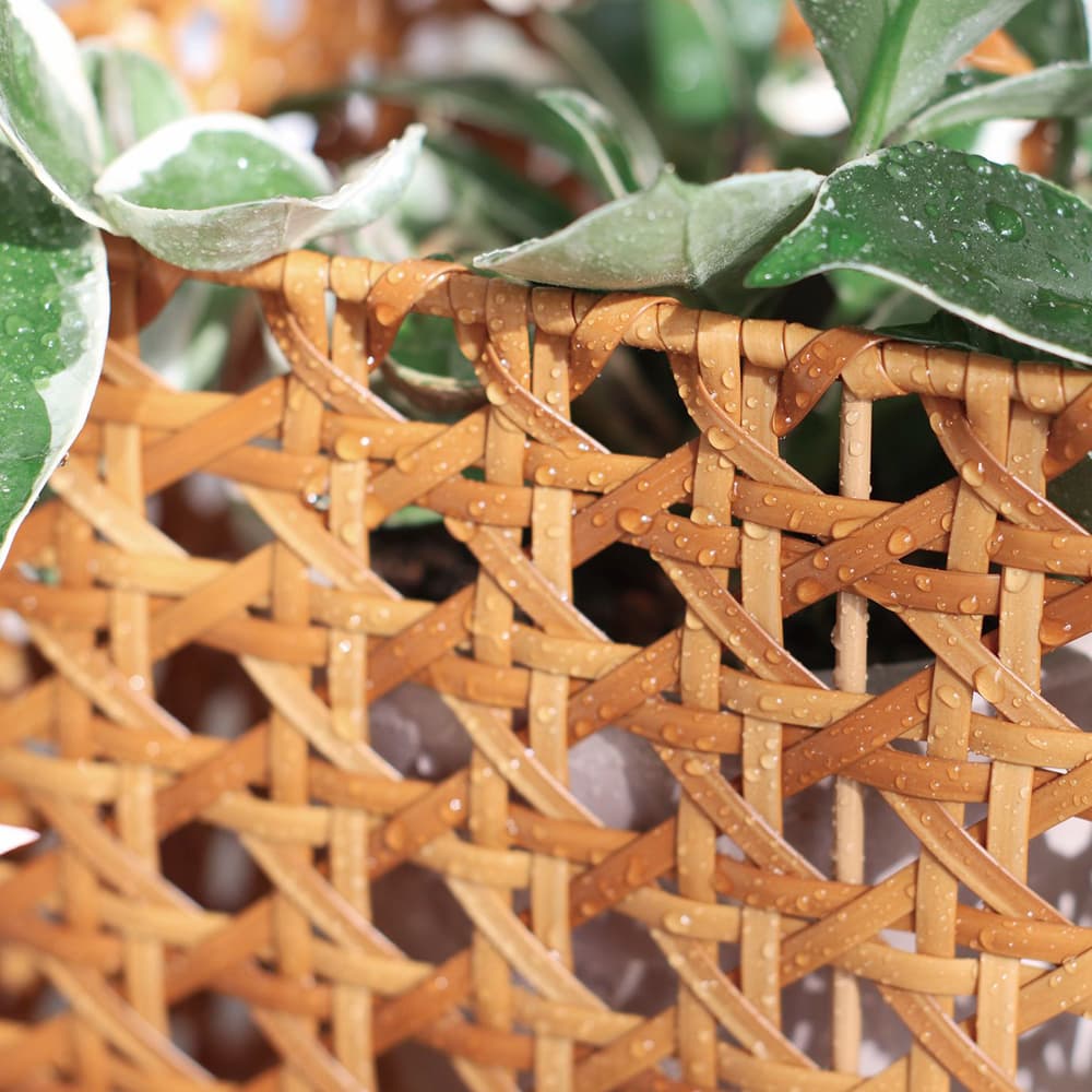 水に強い素材で編まれた八つ目編みのポットスタンドです。