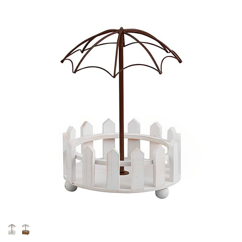 ピケットフェンスとパラソルがセットになった、遊び心いっぱいのポットスタンドです。
