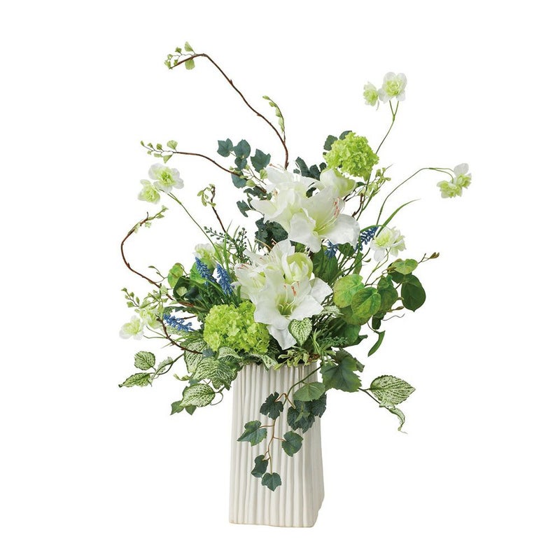 凛と咲く純白のアマリリスに、朝露をまとったような瑞々しいグリーン。