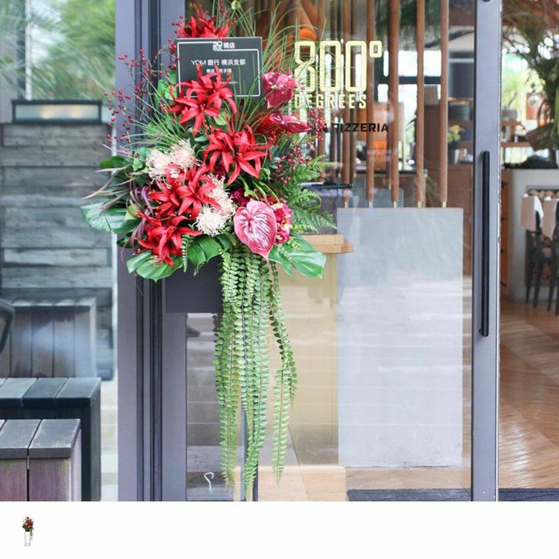 開店祝等の新しい門出への贈り物にぴったりのスタンドフラワーを、美しさの続くアーティフィシャルフラワーでアレンジ。