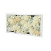 白とクリーム色のダリアやローズを、白いフレームの中に贅沢に敷き詰めたアーティフィシャルフラワーアートです。