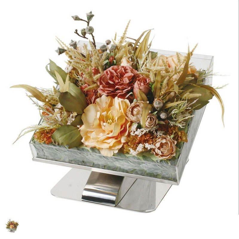 アプリコットやテラコッタなど、深みのあるアンティークカラーのアーティフィシャルフラワーアレンジ。