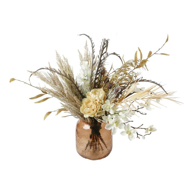 パンパスグラスなどのドライな質感の植物に、クリーム色のピオニーや胡蝶蘭を合わせたフェイクグリーンアレンジメント。