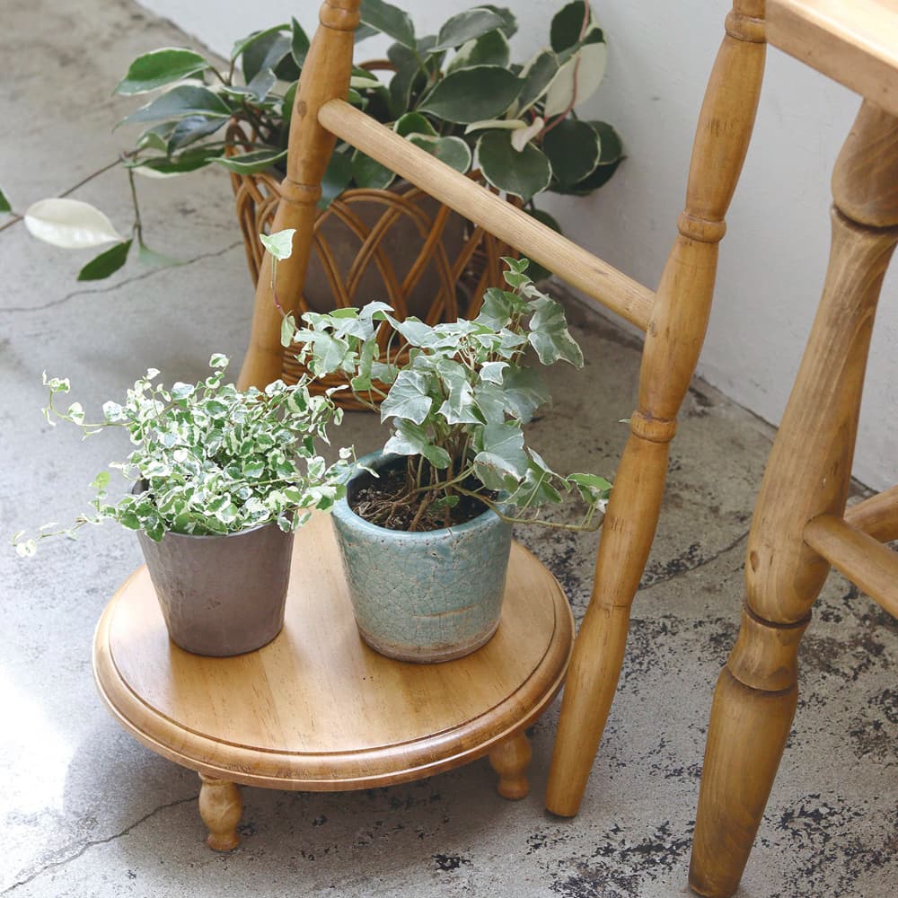 丸みのある三脚が愛らしいパインラウンドスタンド。