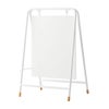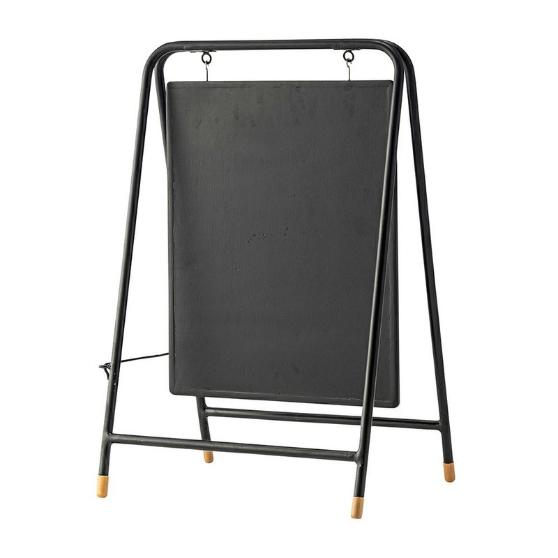 スチールフレームと木製脚キャップの組み合わせが、空間にスタイリッシュな印象を与えるサインボードです。