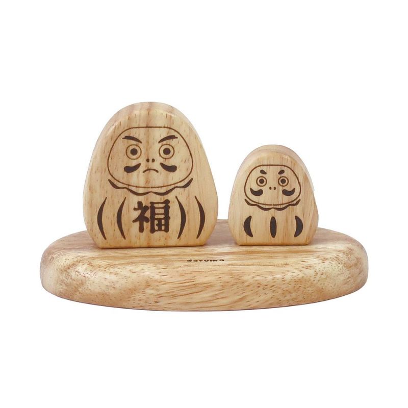 天然木の素朴な風合いと、可愛らしいダルマの形が魅力。窓辺や棚の上に置いて、日々の暮らしに癒しと彩りを。