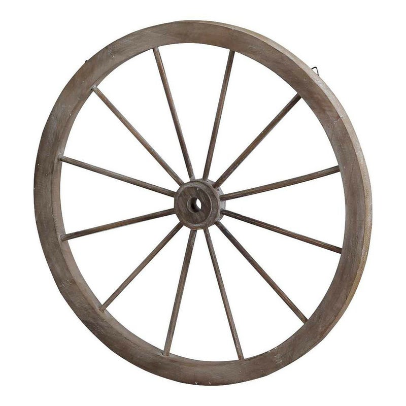 お庭や玄関先に置くだけで、空間の印象がガラリと変わるアンティーク風の木製ホイール。