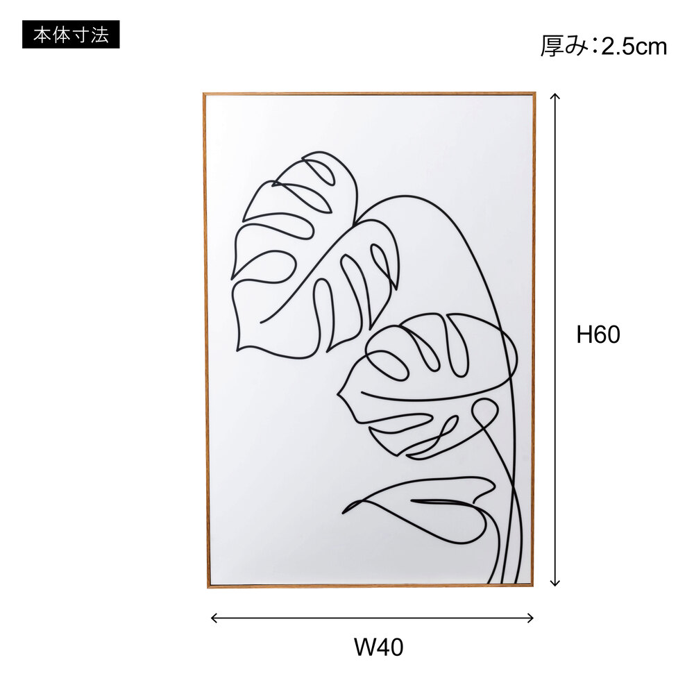 人気のモンステラを一本の線でシンプルに描いたアートパネル。