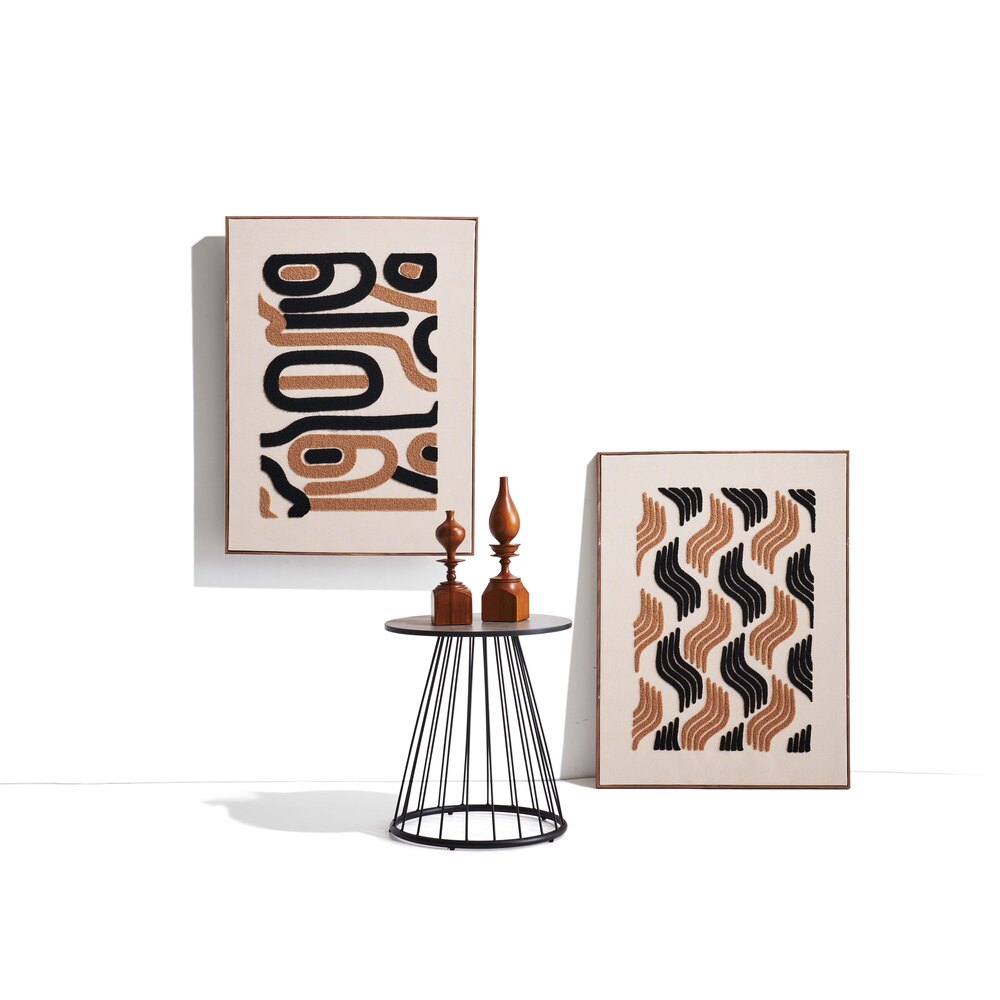 ブラックとベージュが織り成す立体的なラインが、空間に温かみとモダンなヴィジュアルを添えます。