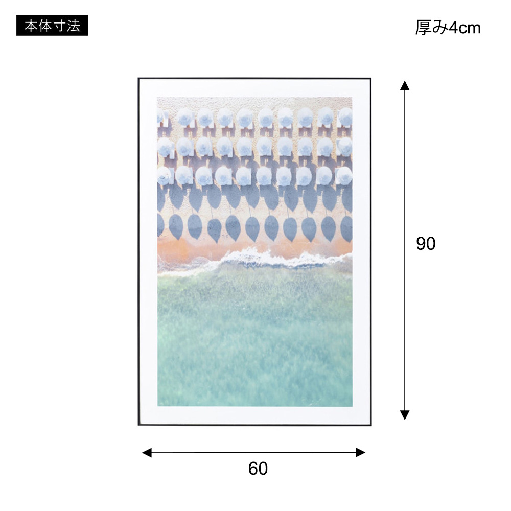 リビングやベッドルームに、まるで海辺の上空から眺めたような爽やかなワンシーンを届けるアートパネルです。