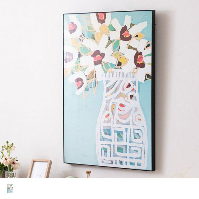鮮やかな色彩で表現された花瓶と花束が、空間に明るさと温かみをプラスします。