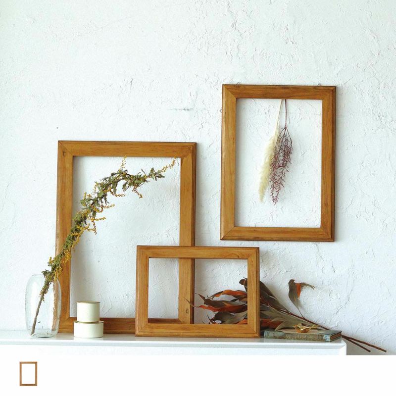 壁掛けでフレームの中にドライフラワーを飾ってみたり、床に置いて中に作品を飾るなど、自由度の高いディスプレイを楽しめる。