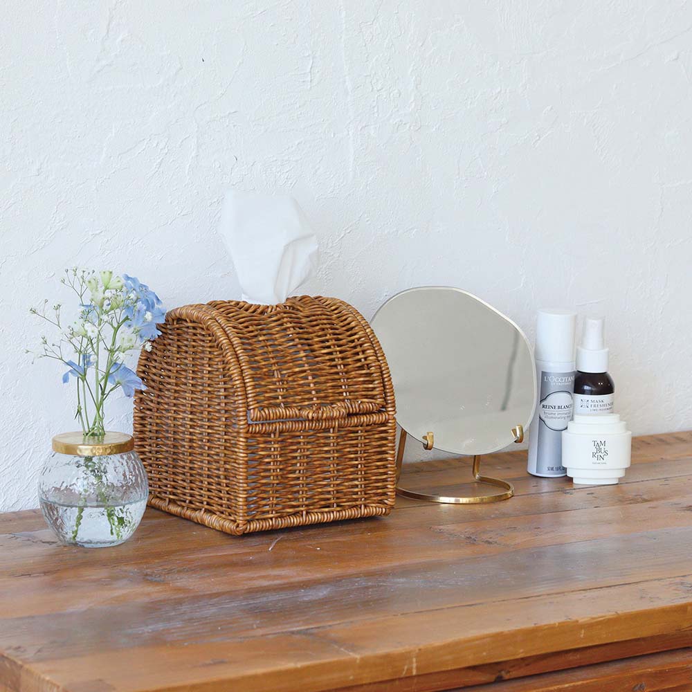 テーブルの上や、デスク周りに。コンパクトに置けるティッシュケースです。