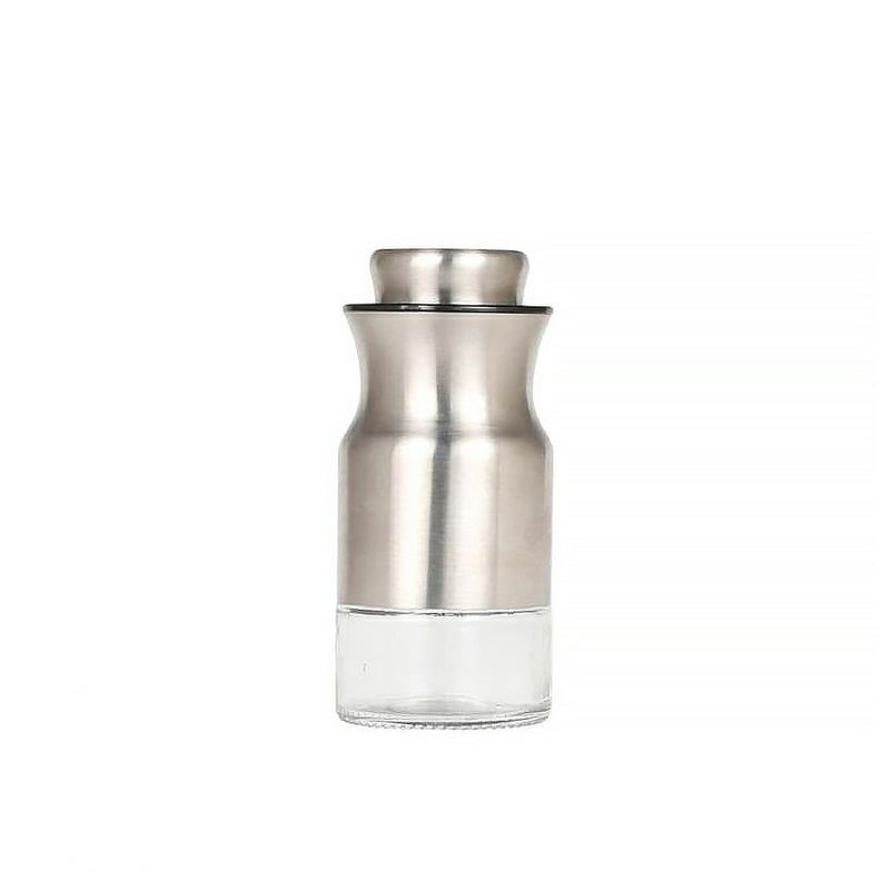 清潔感のあるステンレスを全面に取り入れたデザインですが、瓶下はガラスになっているので中に入れた調味料もすぐに確認出来ます。
