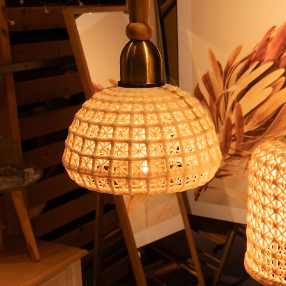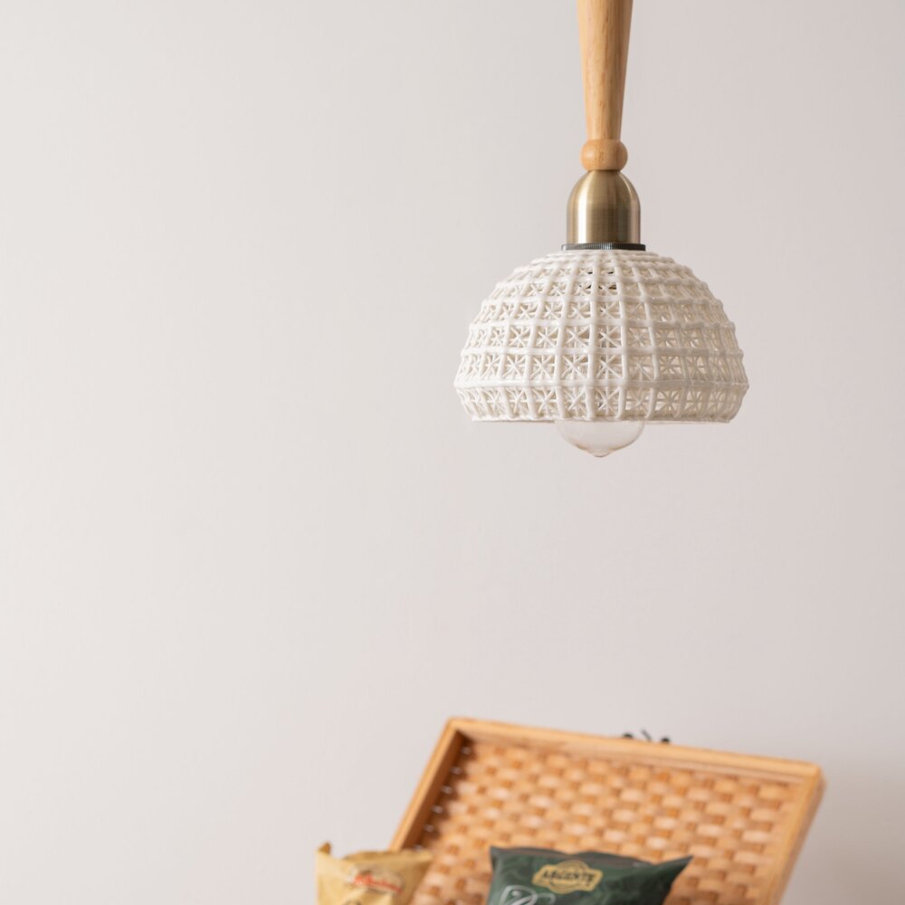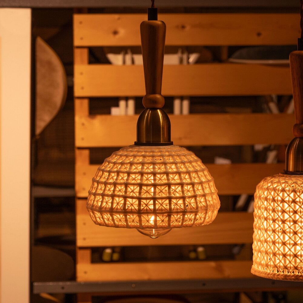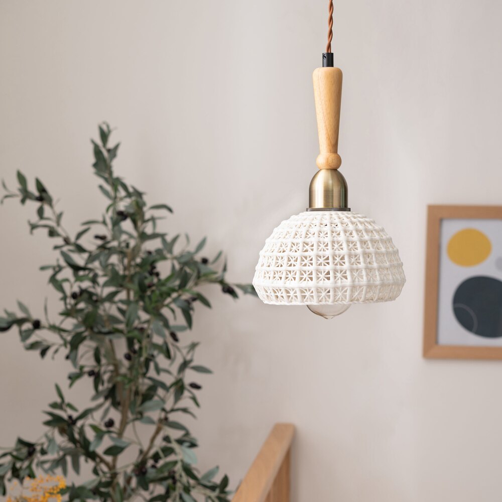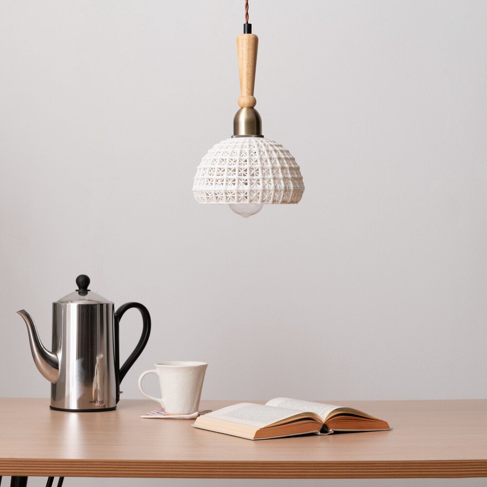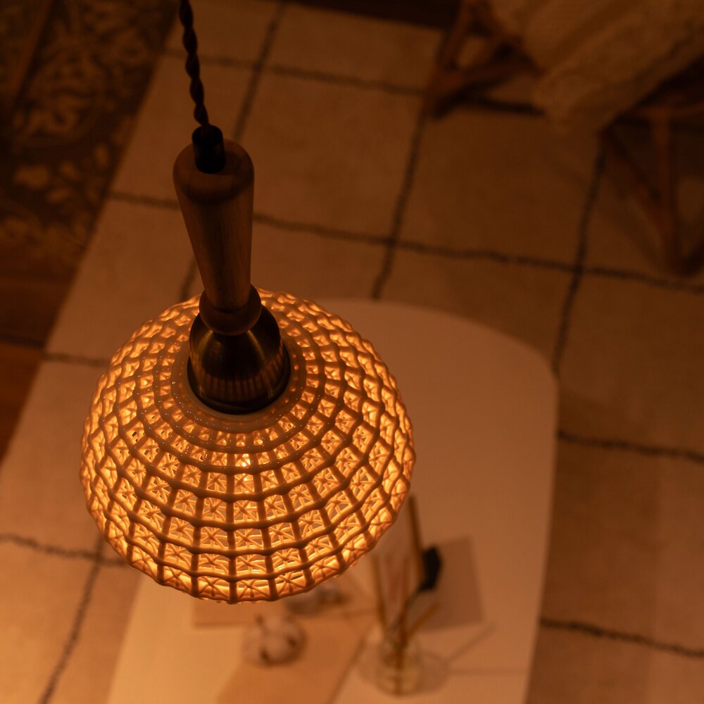 陶器製シェードのペンダントライトは、消灯時もなめらかな質感が美しく、お部屋のアクセントに。