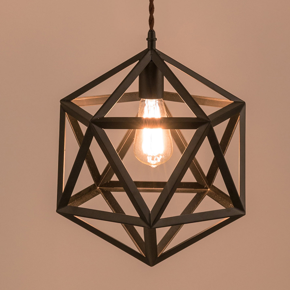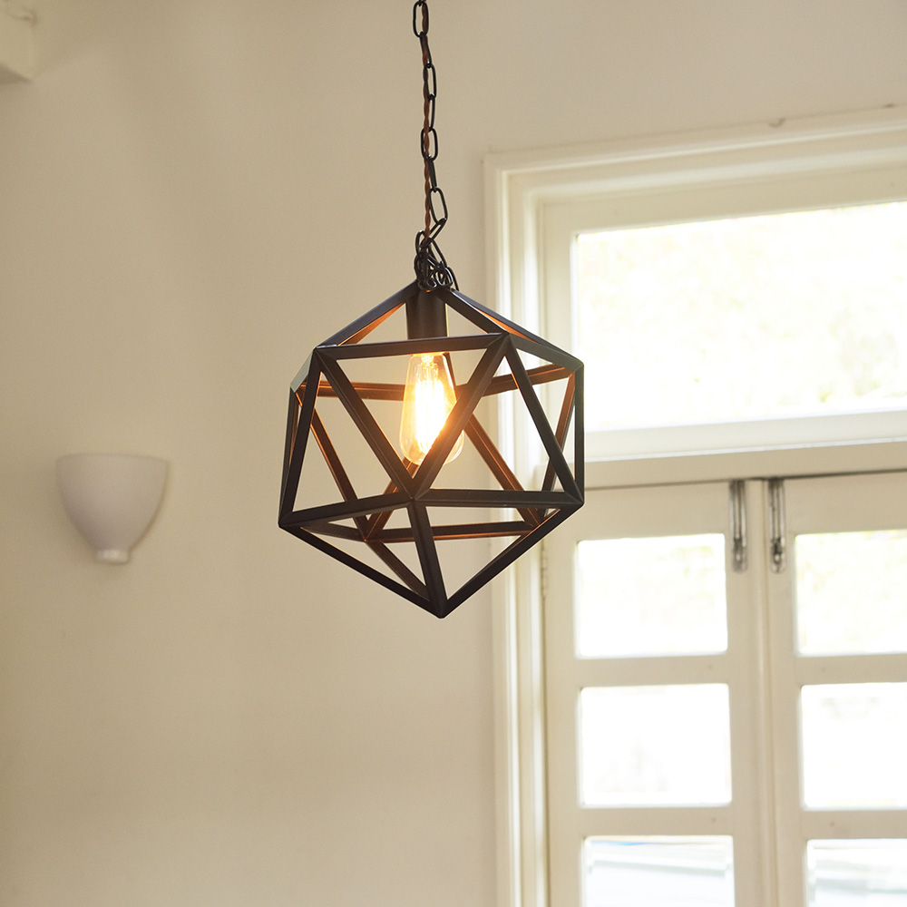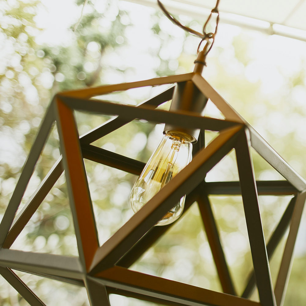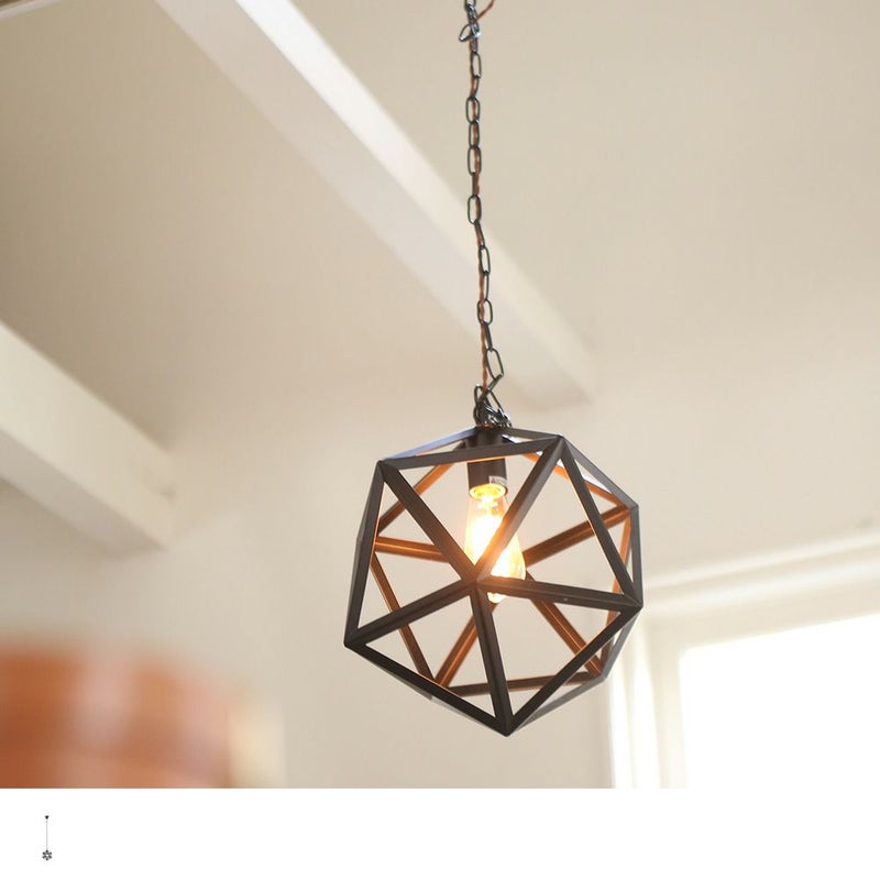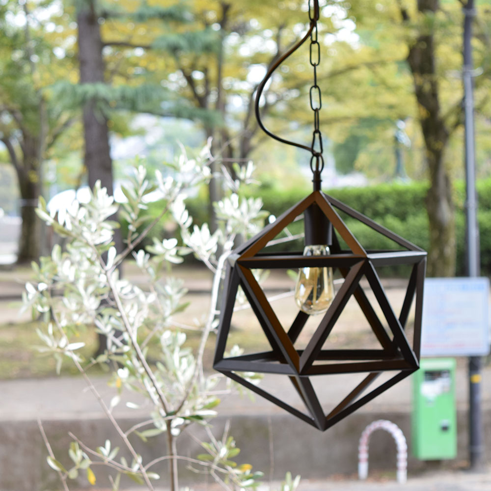 多面体フレームが印象的なペンダントライトは、空間にモダンでアーティスティックな雰囲気を与えます。灯りをともせば、フレームが作り出す光と影が壁や天井に広がり、幻想的な空間を演出。
