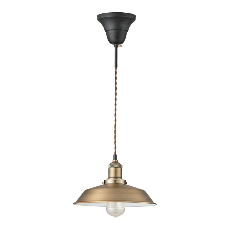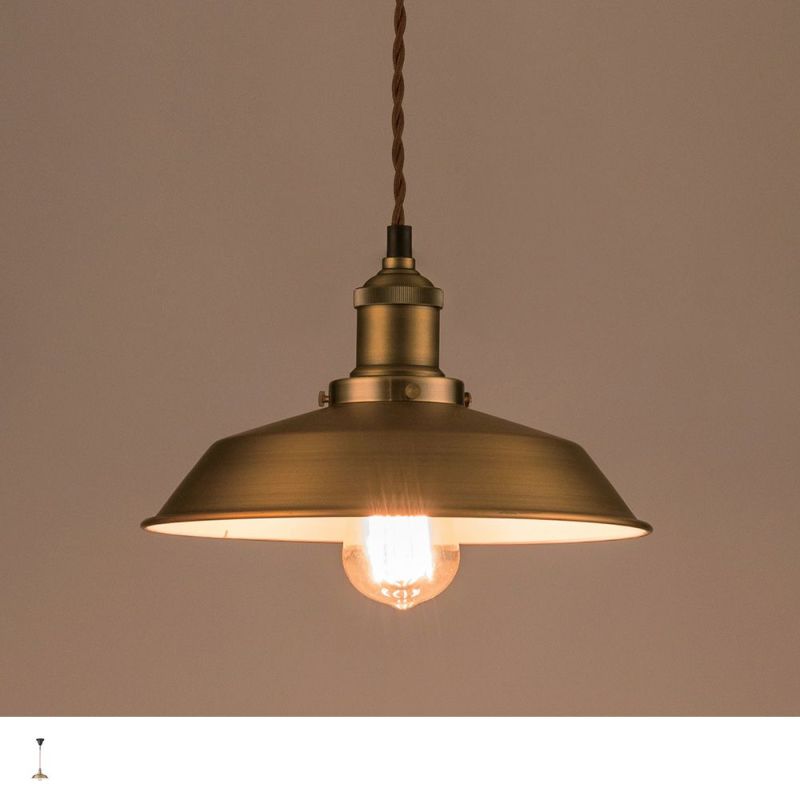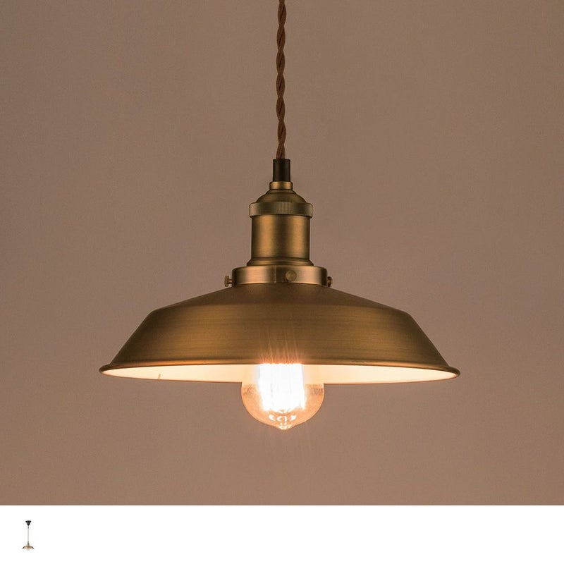 味わい深いアンティークゴールドのシェードが、お部屋に温かみと落ち着きをもたらすペンダントライト。