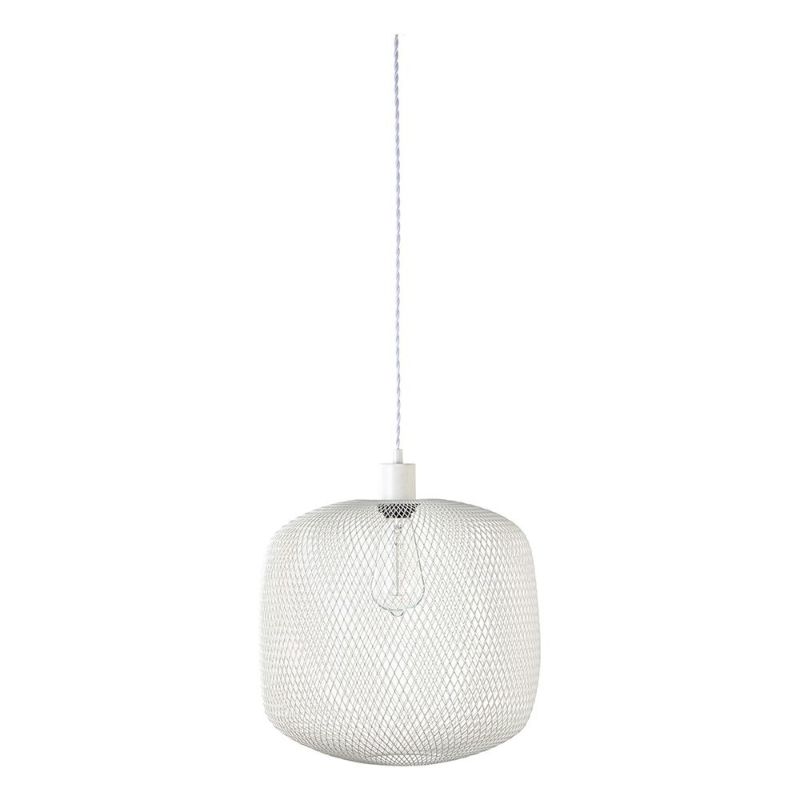 細かなメッシュで編まれた、柔らかな四角いフォルムが印象的なペンダントライト。