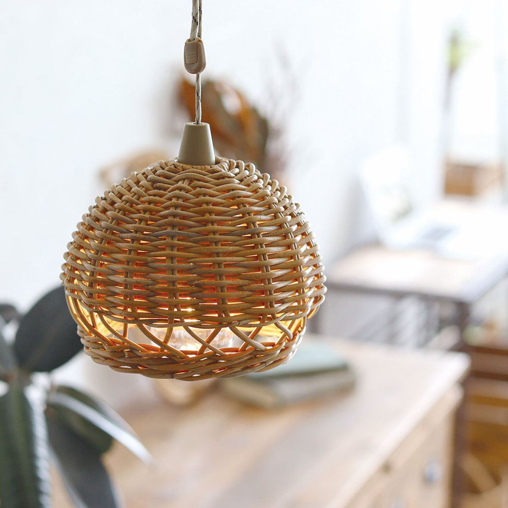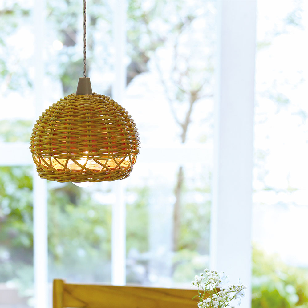 天然素材のアラログシェードが、空間にナチュラルな雰囲気をプラス。電球の光がシェードを通して広がり、心地よい空間を演出します。