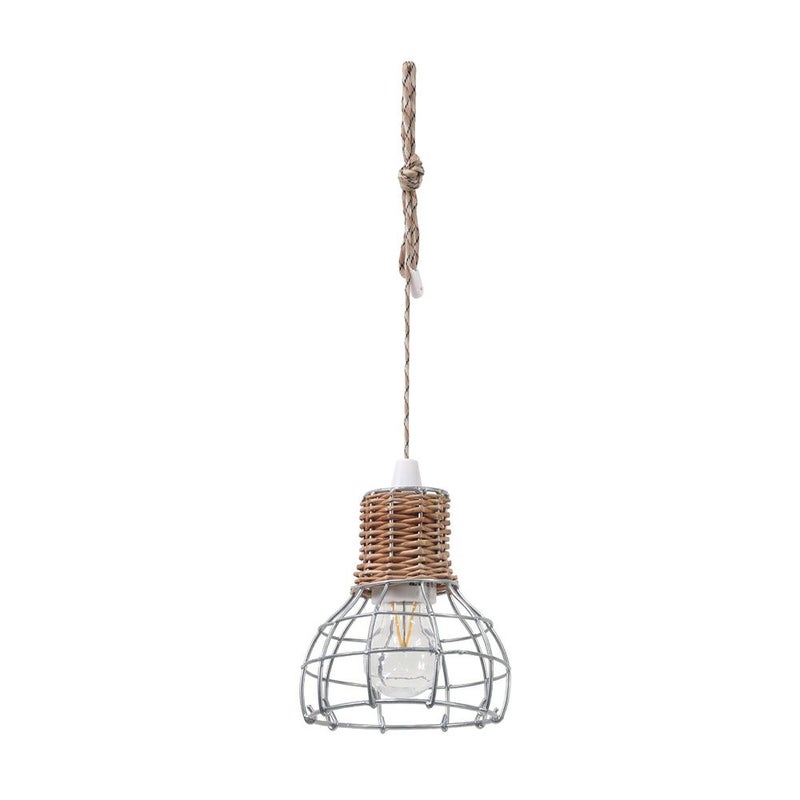 電池式LEDランプとアイアンと柳で編まれたランプシェードをセットにしました。