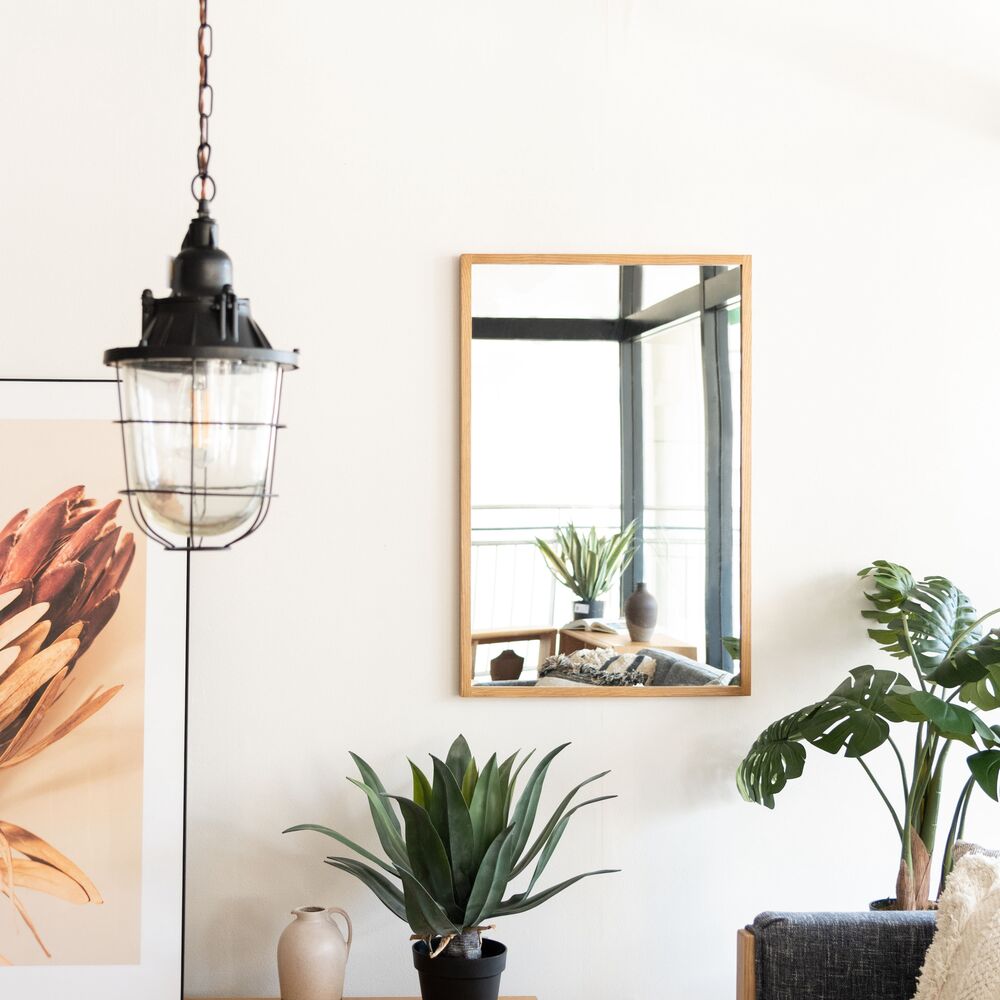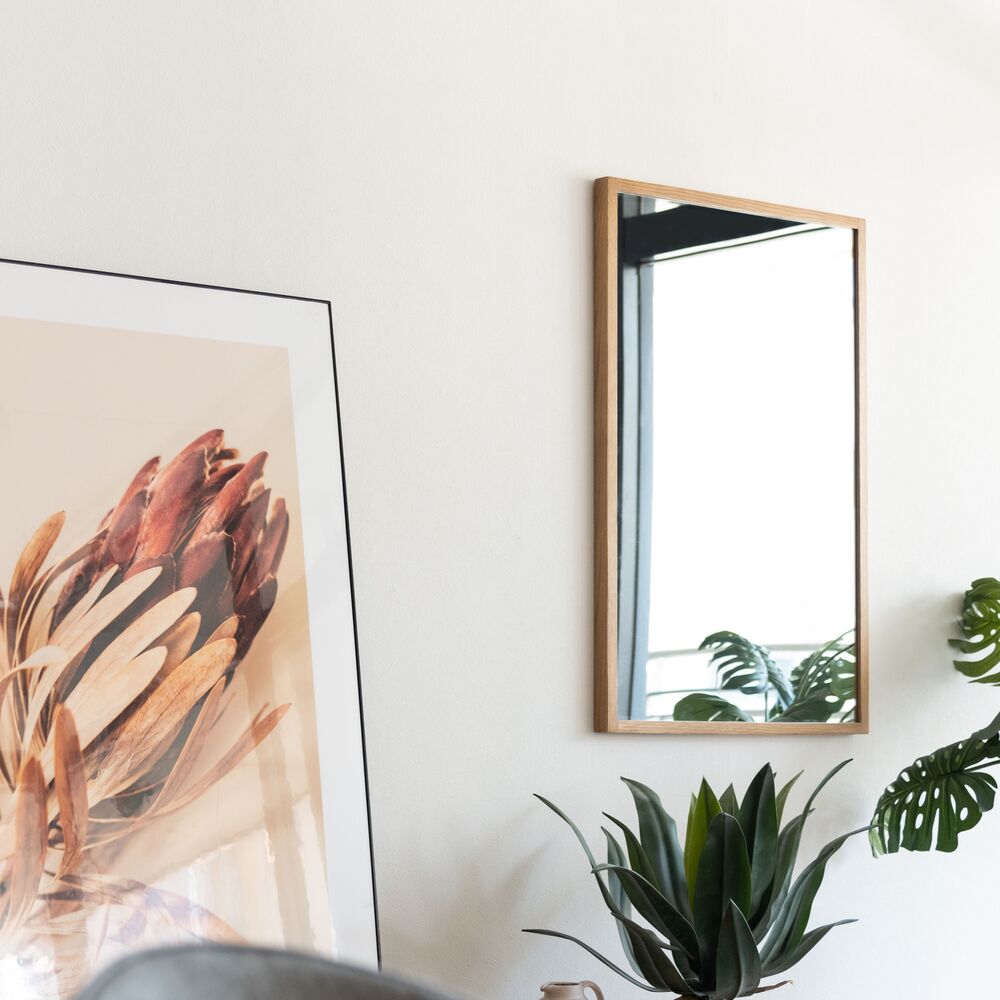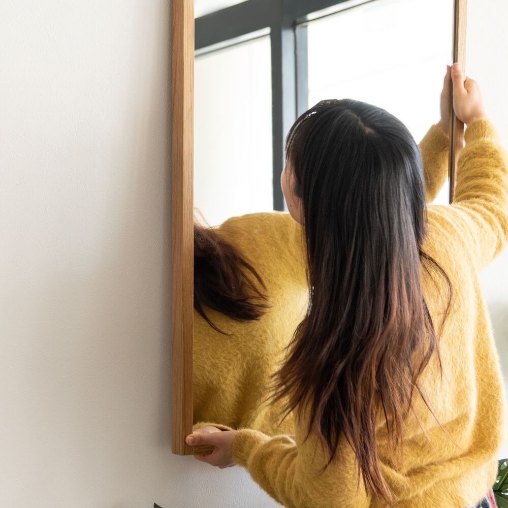 美しく個性的な雰囲気を放つオークの無垢材を使用したウォールミラーです。