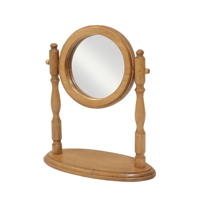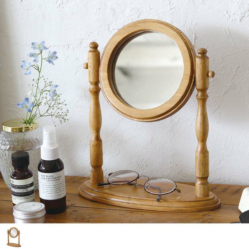 パインウッドのナチュラルな風合いが魅力のラウンドスタンドミラー。