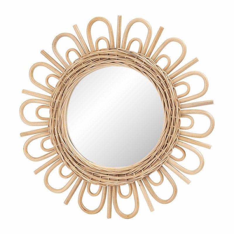 天然素材のラタンを丁寧に編み上げて作られた、華やかなミラーです。