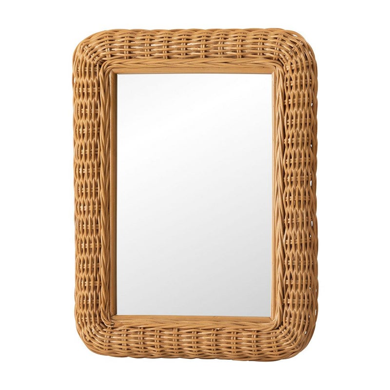 丁寧に編み込まれたラタンのフレームが、ナチュラルで温かみのある空間を演出する壁掛けミラー。