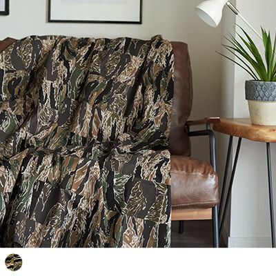 お手持ちの家具にざっくりかけるだけであか抜けた雰囲気に◎カモ柄の中でもデザイン性の高い「タイガーストライプ」でちょっと個性的で他にはないお洒落な部屋に。