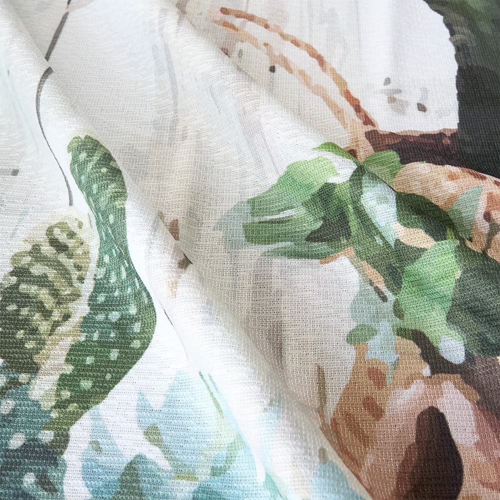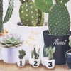 ウッド調の背景にサボテンやグリーンが並ぶ、まるで雑貨屋の一角のようなデザイン。