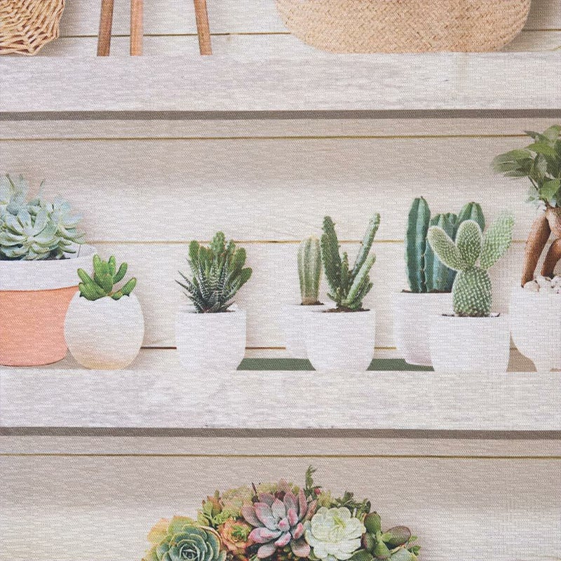 瑞々しいグリーンやサボテン、ナチュラルな雑貨のデザインが空間をぱっと明るく彩ります。